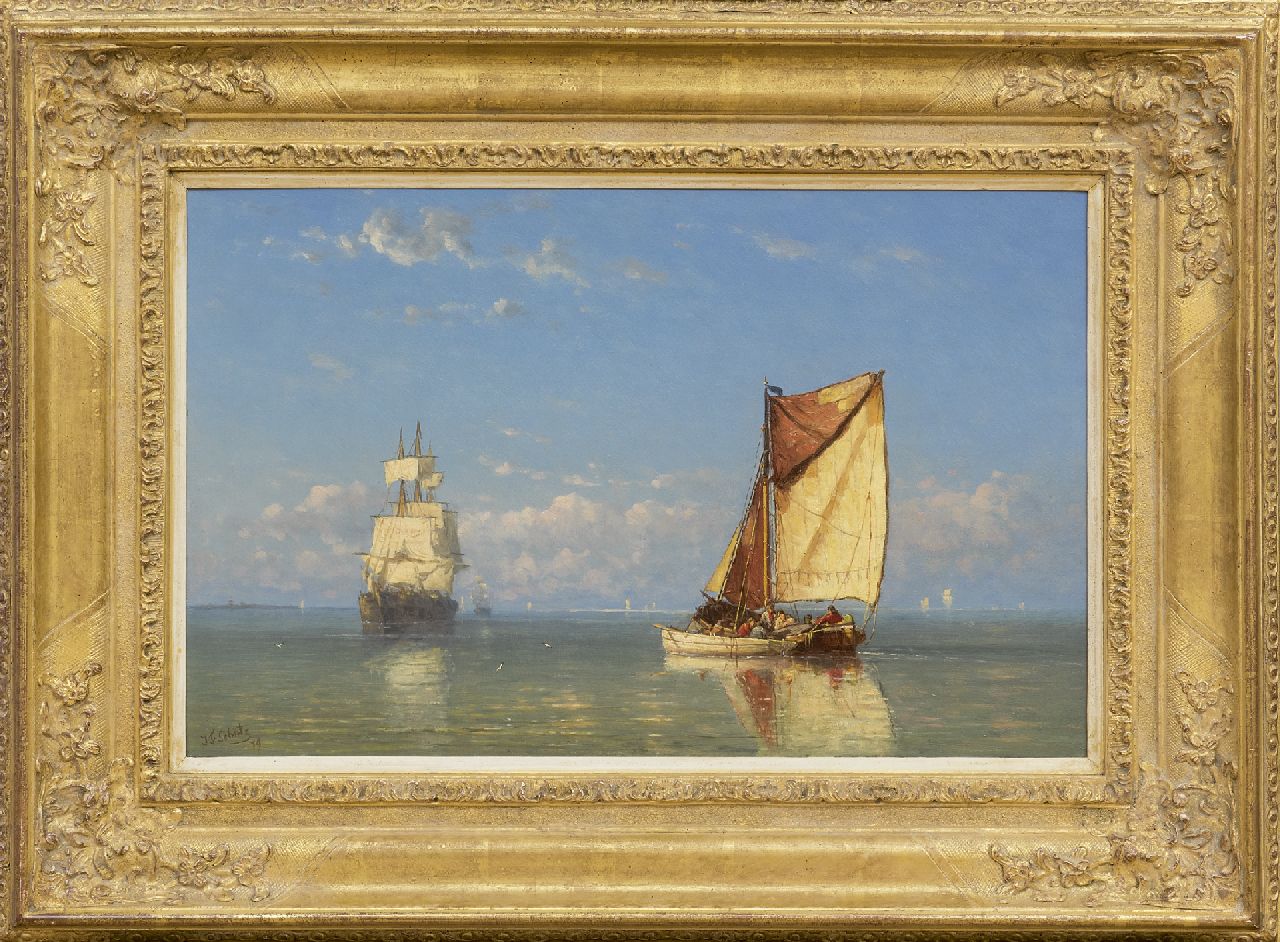Jan Frederik Schütz | Schepen op kalme zee, olieverf op doek, 70,1 x 104,9 cm, gesigneerd l.o. en gedateerd '78