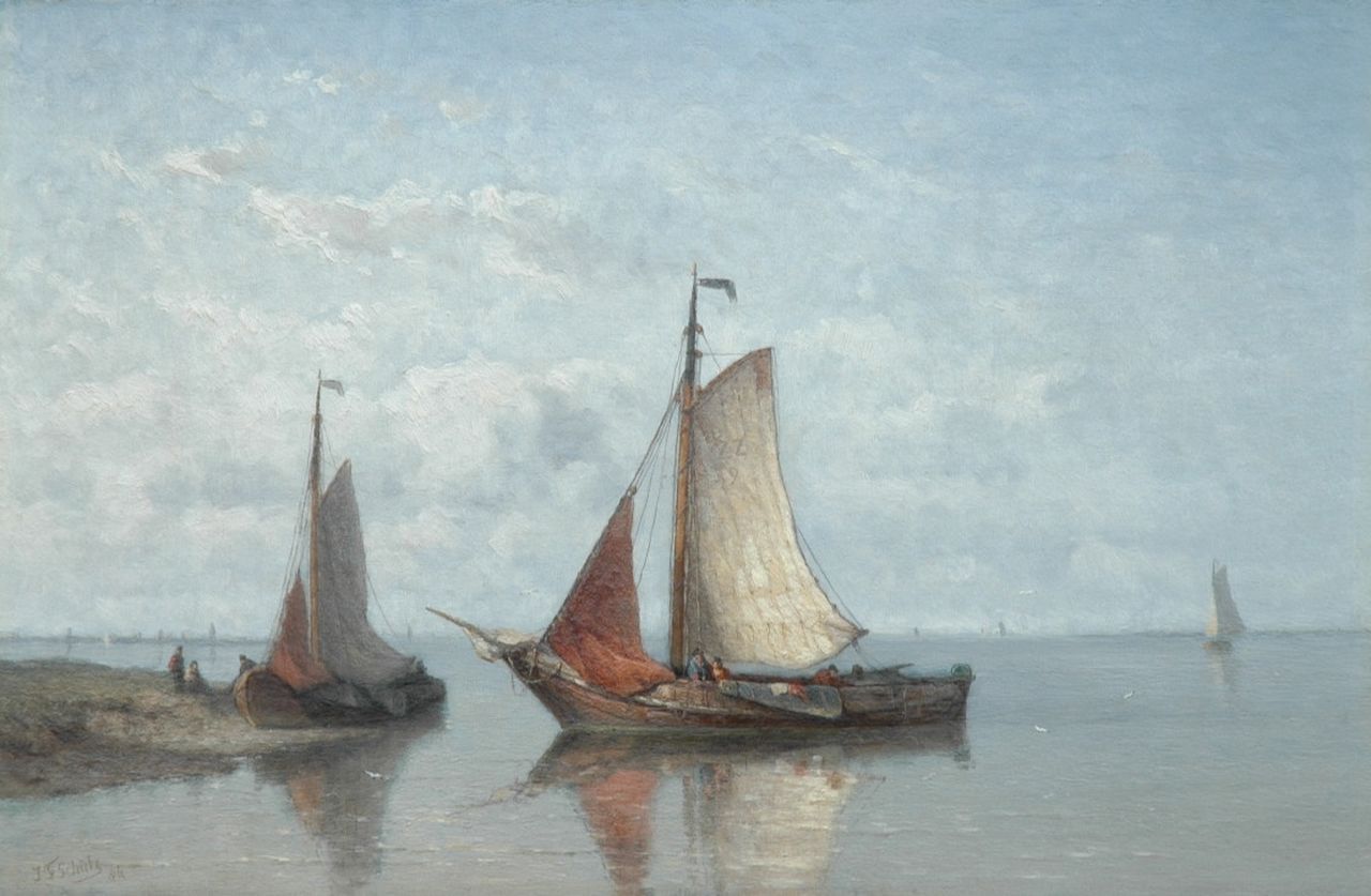 Jan Frederik Schütz kunstwerk • schilderij • voorheen te koop Zierikzeese botters op kalm water