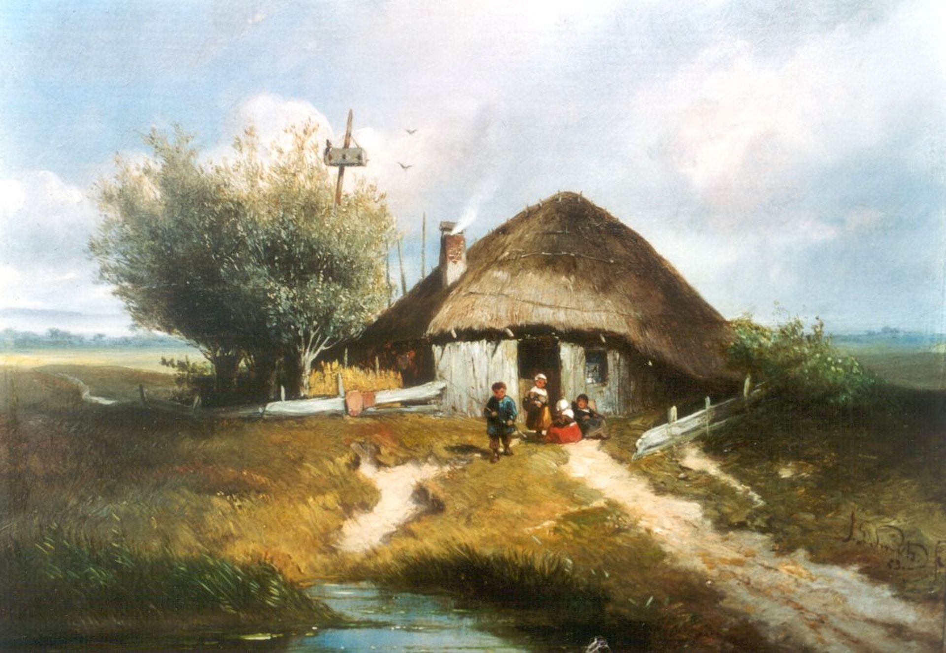 Jan Gerard Smits kunstwerk • schilderij • voorheen te koop Landschap met kinderen bij een boerenhut