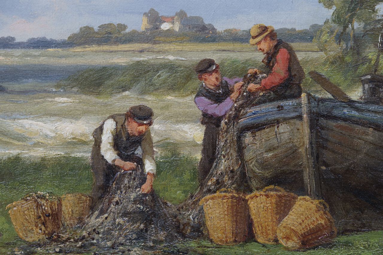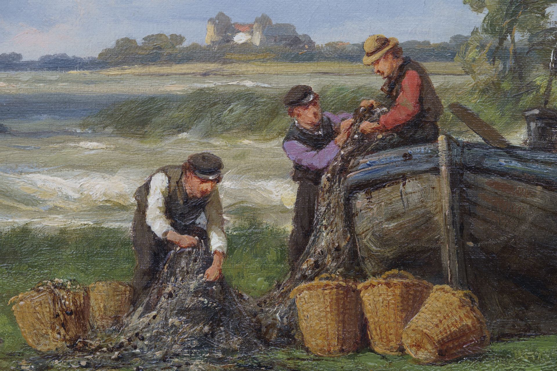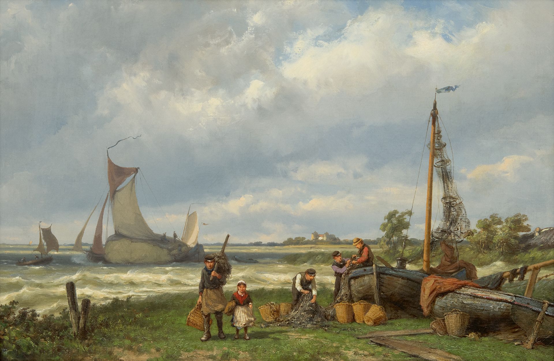 Jan H.B. Koekkoek | Het uitladen van de vangst, olieverf op paneel, 23,5 x 34,3 cm, gesigneerd l.o.