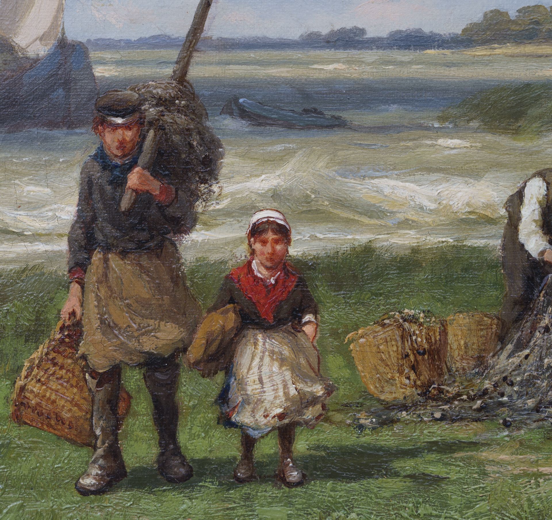 Jan H.B. Koekkoek | Schelpenvisser en familie op het strand, olieverf op doek, 24,2 x 62,7 cm, gesigneerd r.o.
