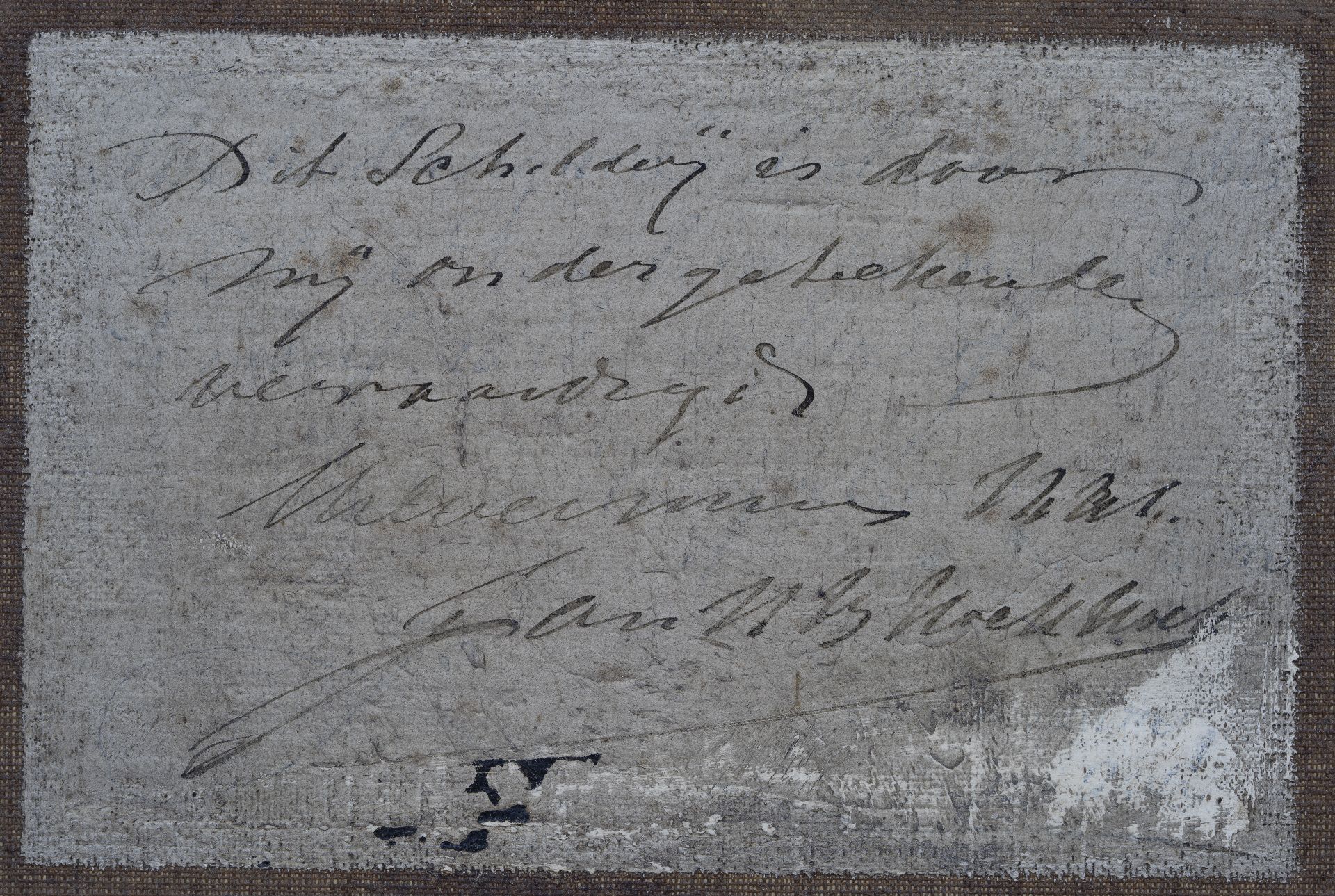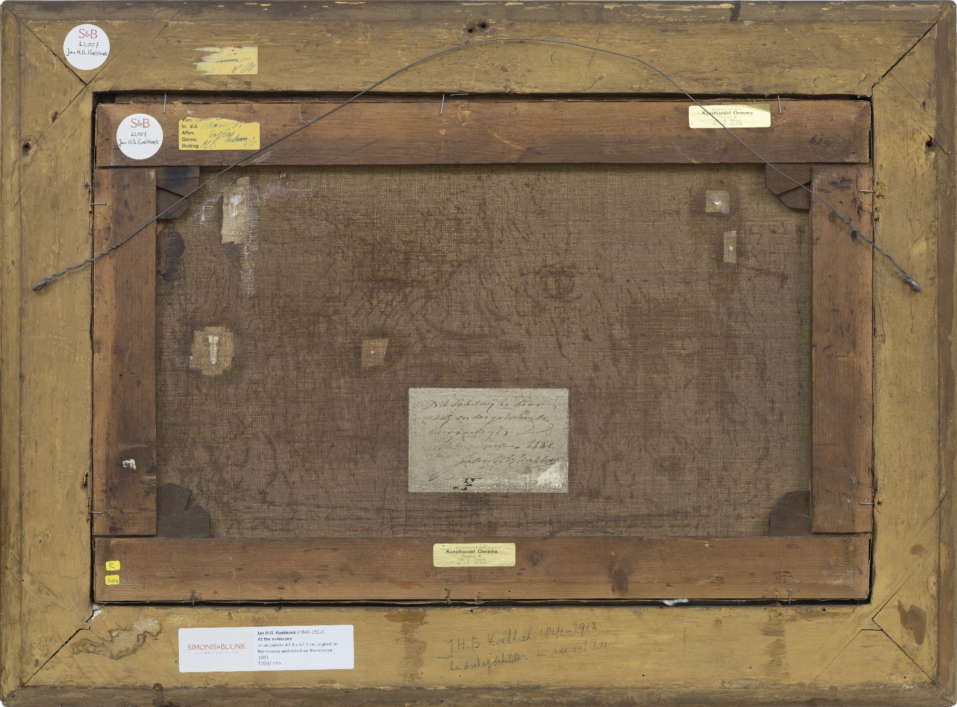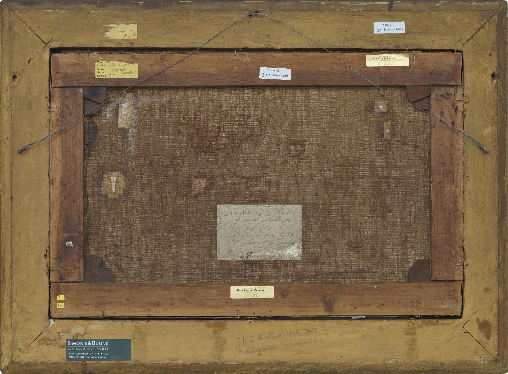 met verso authenticiteitsverklaring van de schilder: 'Dit schilderij is door mij ondergetekende vervaardigd, Hilversum 1881, Jan H.B. Koekkoek'