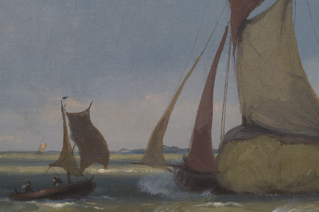 Jan H.B. Koekkoek | Schepen voor de kust bij kalm weer, olieverf op doek, 43,4 x 62,0 cm, gesigneerd l.o.