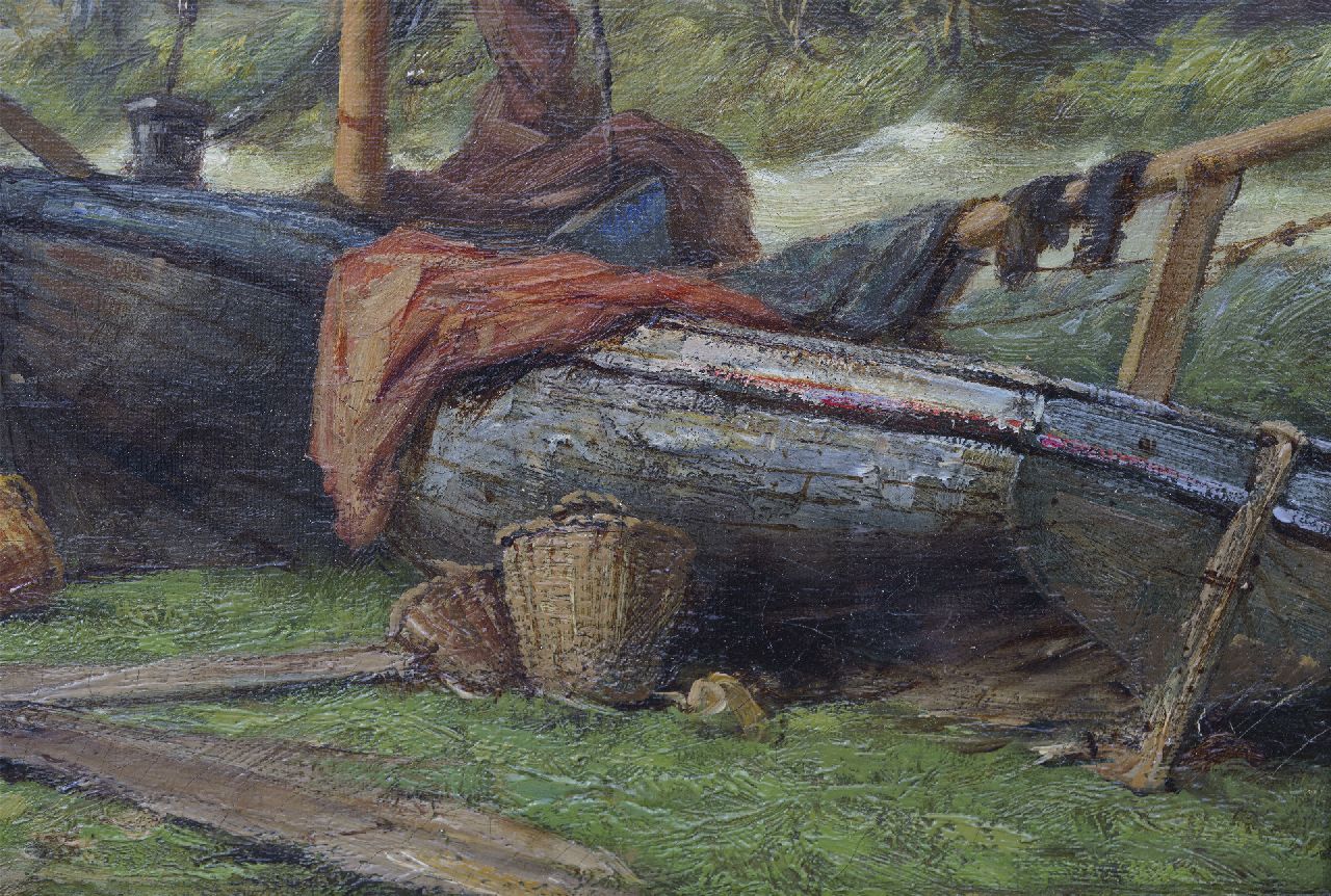 Dit werk van J.H.B. Koekkoek heeft nog aansluiting met het werk van zijn vader Hermanus Koekkoek. Dit is te zien aan de zorgvuldige manier van schilderen en de fijne detaillering van de vissers, die met hun netten bezig zijn. Later zou J.H.B. Koekkoek meer en meer aansluiting zoeken met de Haagse School en zijn schilderstijl steeds losser worden.