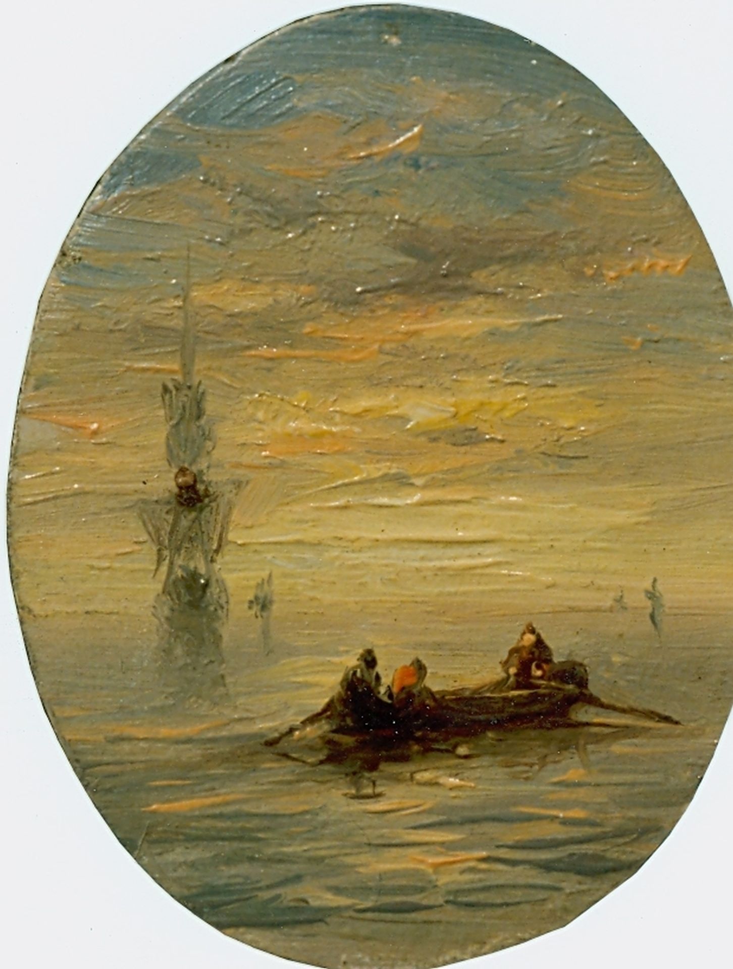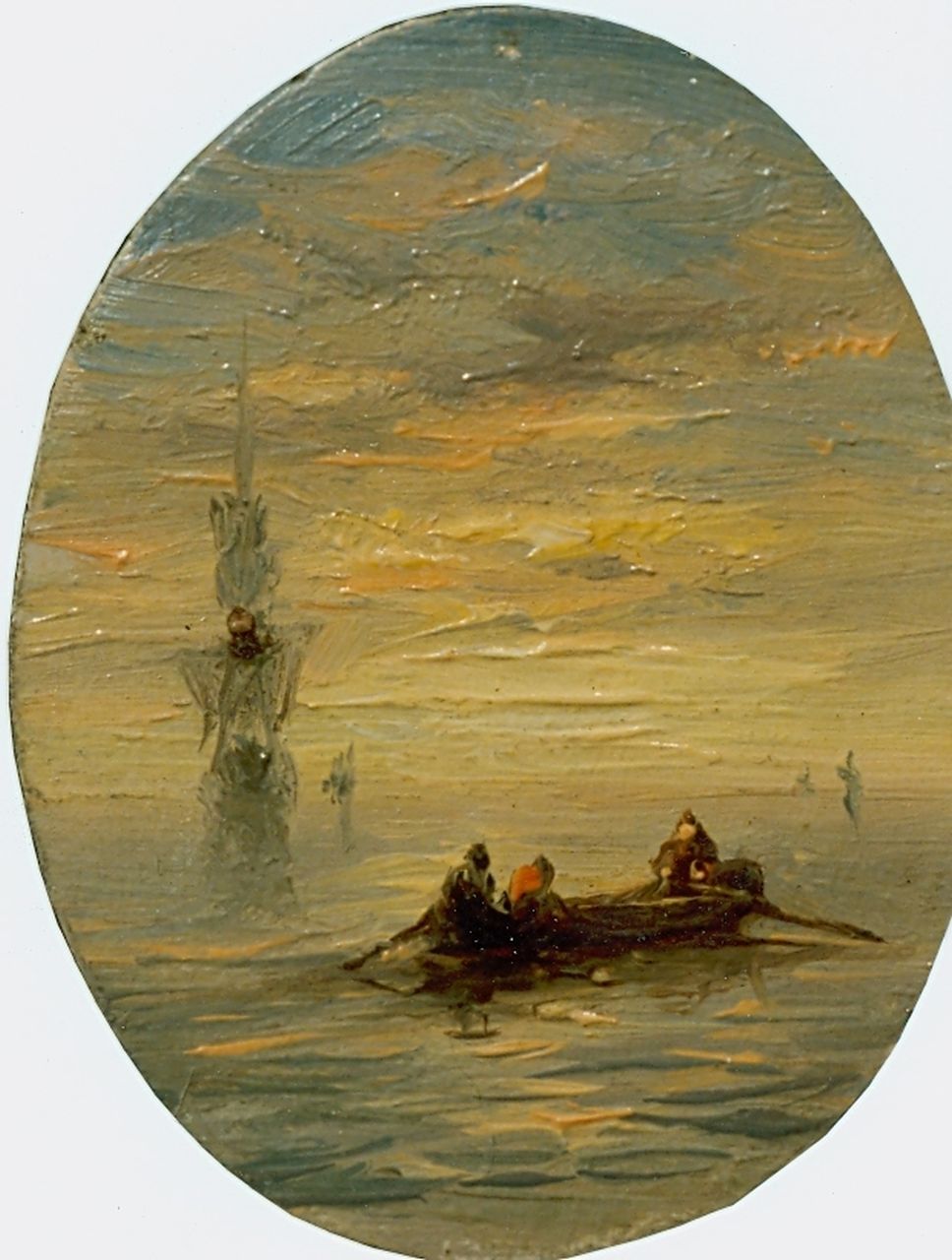 Jan H.B. Koekkoek kunstwerk • schilderij • voorheen te koop Boten op zee bij avond