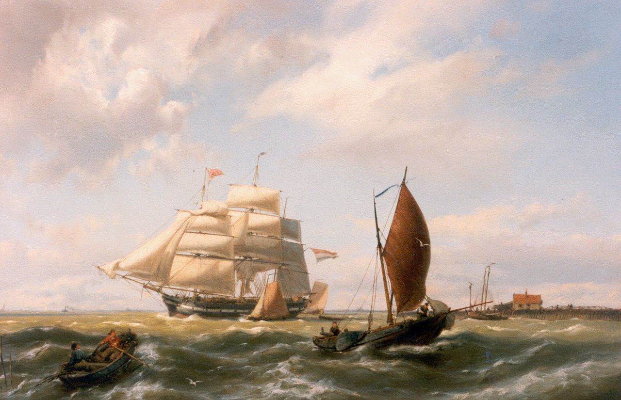 Jan H.B. Koekkoek kunstwerk • schilderij • voorheen te koop Een driemaster vaart uit