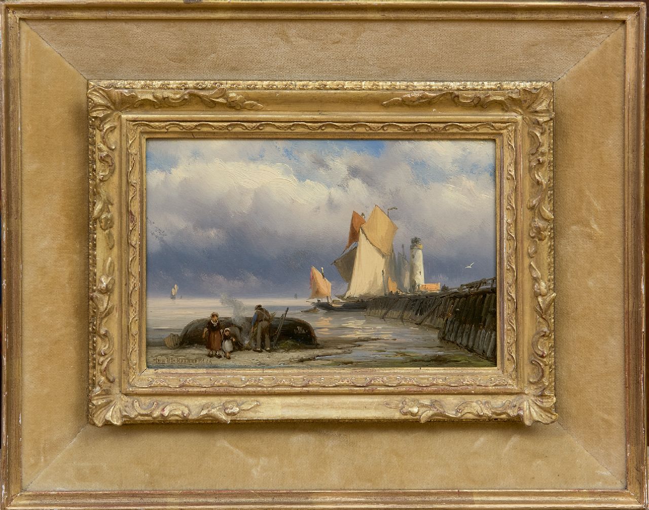 Jan H.B. Koekkoek kunstwerk • schilderij • voorheen te koop Haveningang bij eb