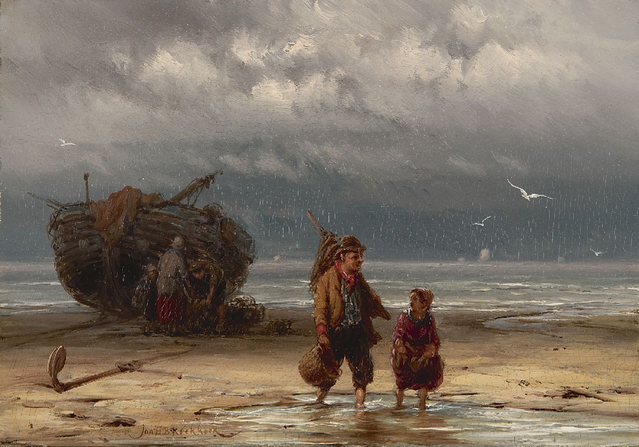 Jan H.B. Koekkoek, de derde zoon van de marineschilder Hermanus Koekkoek sr., was van zijn vier zonen de meest veelzijdige. Ook hij kreeg les van zijn vader, van wie de invloed nog duidelijk zichtbaar is in de zorgvuldige schildertrant en fijne detaillering van zijn vroege zee- en riviergezichten. In latere jaren zocht Jan H.B. steeds meer aansluiting met de Haagse School, trok hij richting het Gooi en schilderde hij strand- en zeegezichten en scènes uit het vissersleven in een losse schilderstijl en helder kleurpalet. Hij is daarmee een goed voorbeeld van hoe de schilderkunst eind 19e eeuw veranderde. Alhoewel de ‘romantiek ’nog niet uit zijn schilderijen verdwenen was werd het duidelijk dat er langzaamaan een nieuwe tijd zou aanbreken.