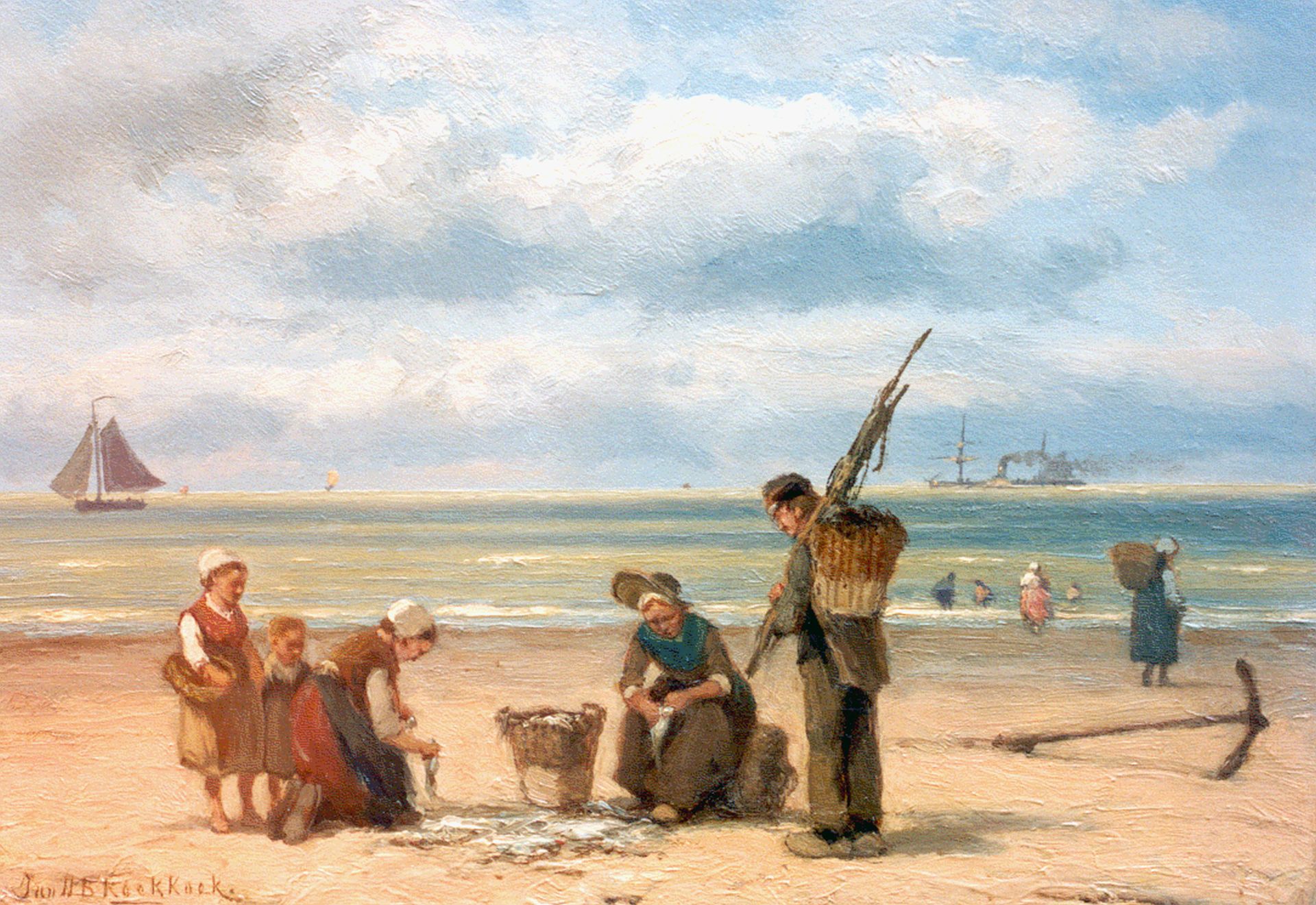 Jan H.B. Koekkoek, de derde zoon van de marineschilder Hermanus Koekkoek sr., was van zijn vier zonen de meest veelzijdige. Ook hij kreeg les van zijn vader, van wie de invloed nog duidelijk zichtbaar is in de zorgvuldige schildertrant en fijne detaillering van zijn vroege zee- en riviergezichten. In latere jaren zocht Jan H.B. steeds meer aansluiting met de Haagse School, trok hij richting het Gooi en schilderde hij strand- en zeegezichten en scènes uit het vissersleven in een losse schilderstijl en helder kleurpalet. Hij is daarmee een goed voorbeeld van hoe de schilderkunst eind 19e eeuw veranderde. Alhoewel de ‘romantiek ’nog niet uit zijn schilderijen verdwenen was werd het duidelijk dat er langzaamaan een nieuwe tijd zou aanbreken.