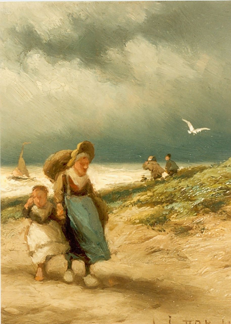 Jan H.B. Koekkoek kunstwerk • schilderij • voorheen te koop Met visvangst op weg naar huis