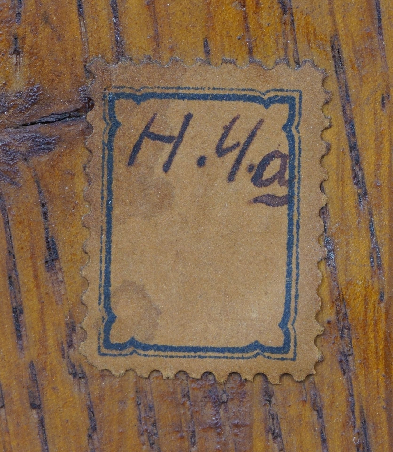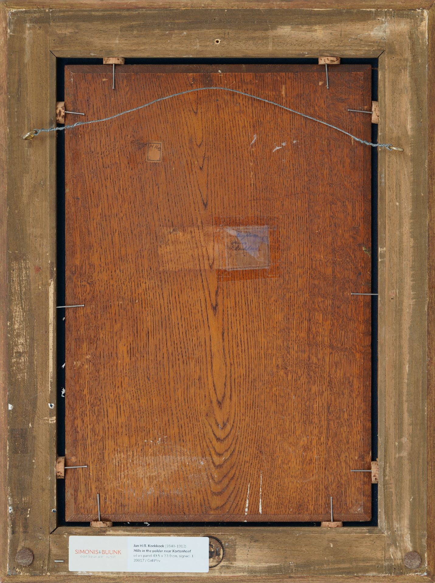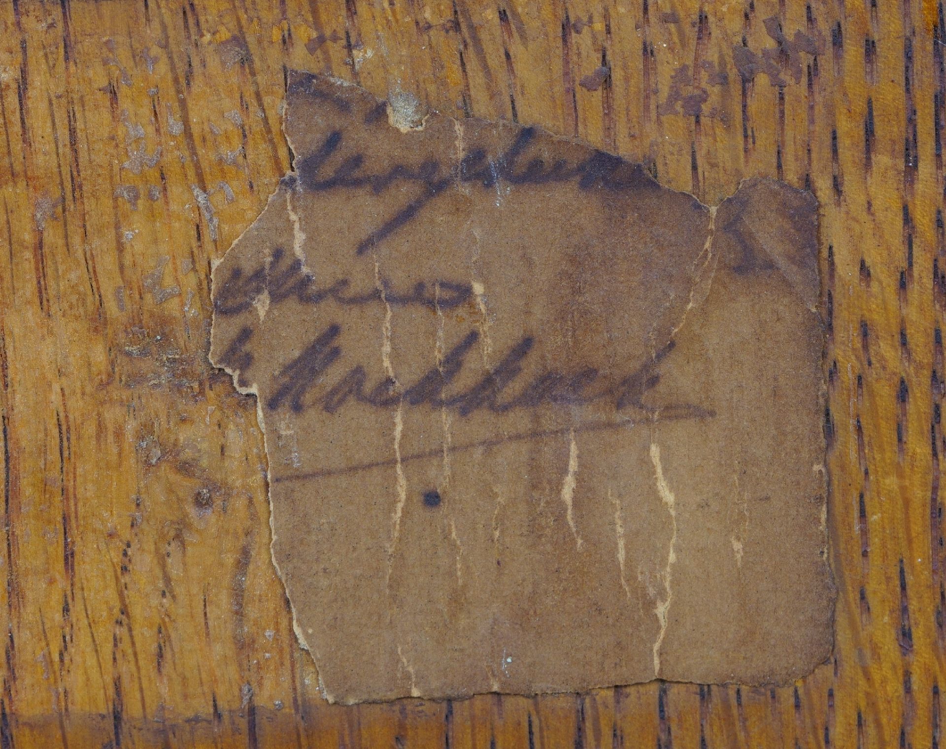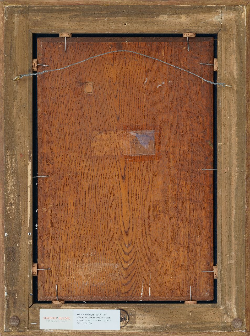 annotatie: verso restant van authenticiteitsverklaring van de schilder op etiket.