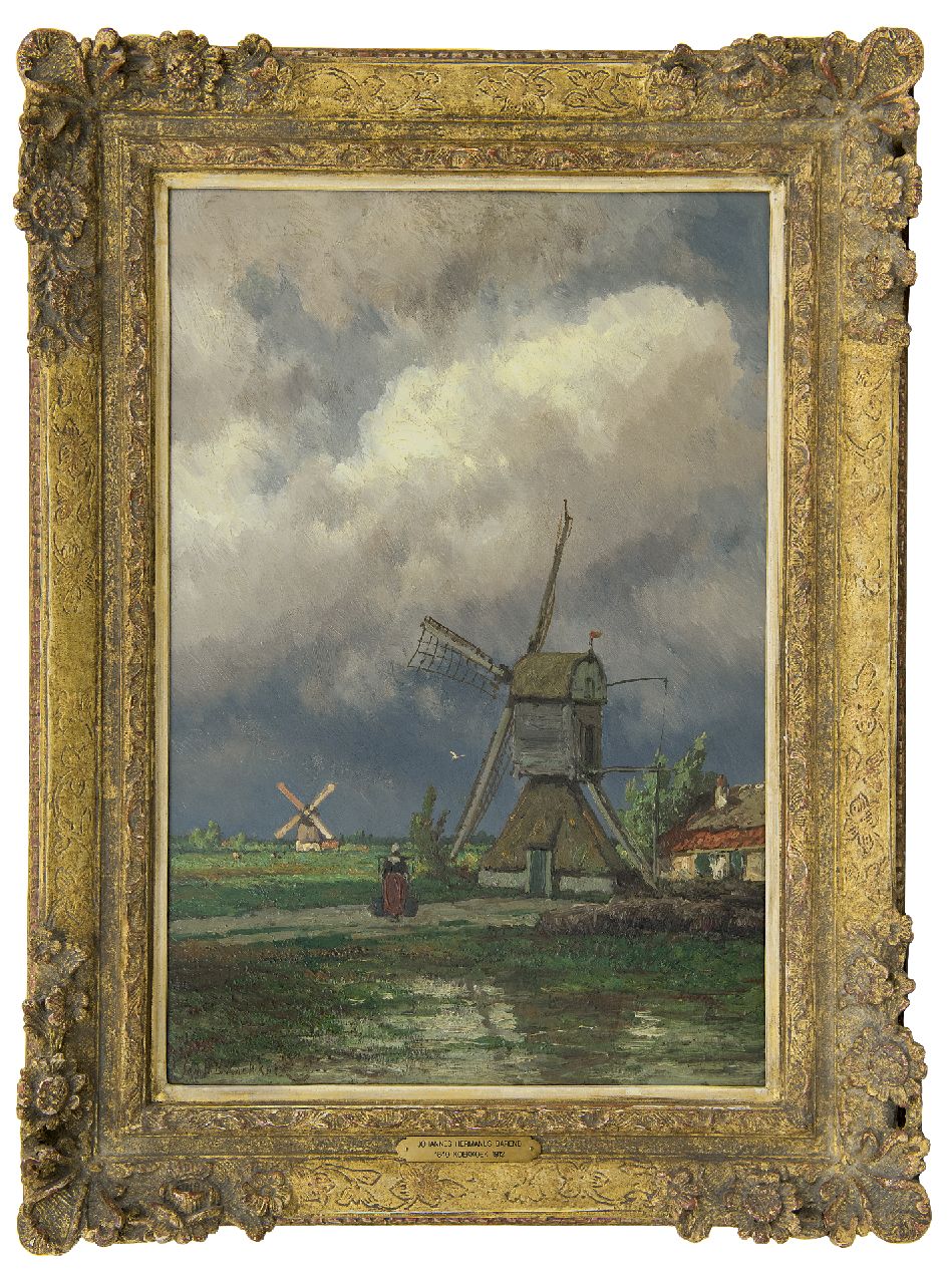 Jan H.B. Koekkoek kunstwerk • schilderij • voorheen te koop Poldermolens bij Kortenhoef