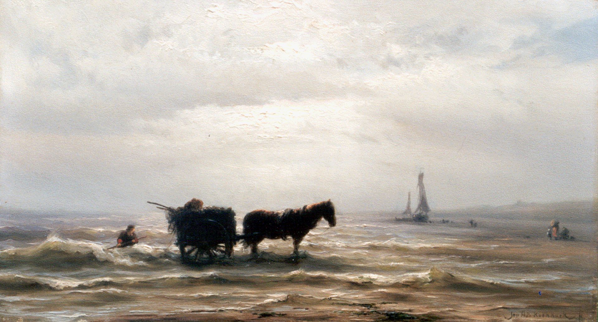 Jan H.B. Koekkoek kunstwerk • schilderij • voorheen te koop Schelpenvisser in de branding bij Zandvoort