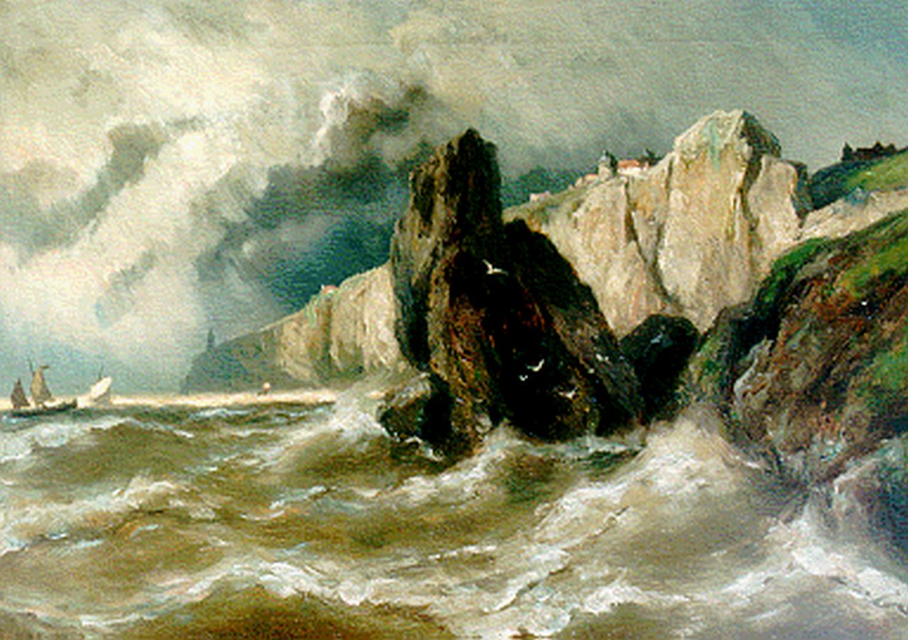 Jan H.B. Koekkoek kunstwerk • schilderij • voorheen te koop Schepen in de storm bij de kust van Dover