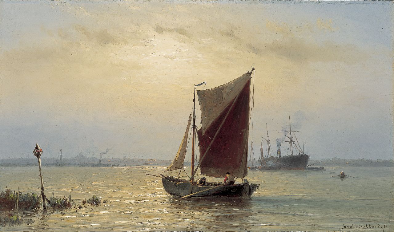 Jan H.B. Koekkoek, de derde zoon van de marineschilder Hermanus Koekkoek sr., was van zijn vier zonen de meest veelzijdige. Ook hij kreeg les van zijn vader, van wie de invloed nog duidelijk zichtbaar is in de zorgvuldige schildertrant en fijne detaillering van zijn vroege zee- en riviergezichten. In latere jaren zocht Jan H.B. steeds meer aansluiting met de Haagse School, trok hij richting het Gooi en schilderde hij strand- en zeegezichten en scènes uit het vissersleven in een losse schilderstijl en helder kleurpalet. Hij is daarmee een goed voorbeeld van hoe de schilderkunst eind 19e eeuw veranderde. Alhoewel de ‘romantiek ’nog niet uit zijn schilderijen verdwenen was werd het duidelijk dat er langzaamaan een nieuwe tijd zou aanbreken.