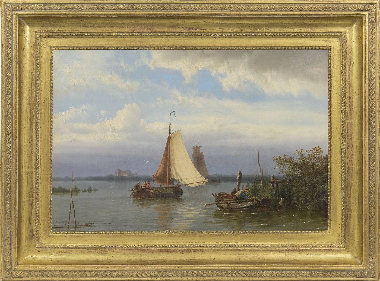 Jan H.B. Koekkoek kunstwerk • schilderij • voorheen te koop Schepen op een rivier bij kalm weer