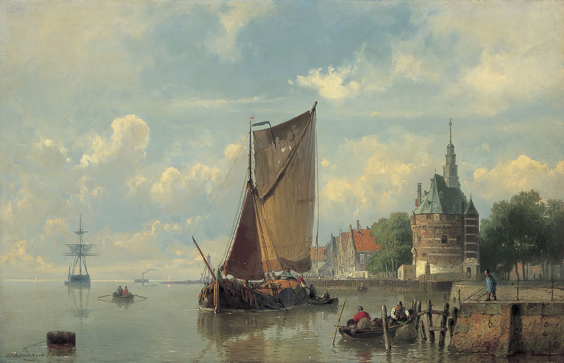Jan H.B. Koekkoek kunstwerk • schilderij • voorheen te koop Schepen voor de haven van Hoorn