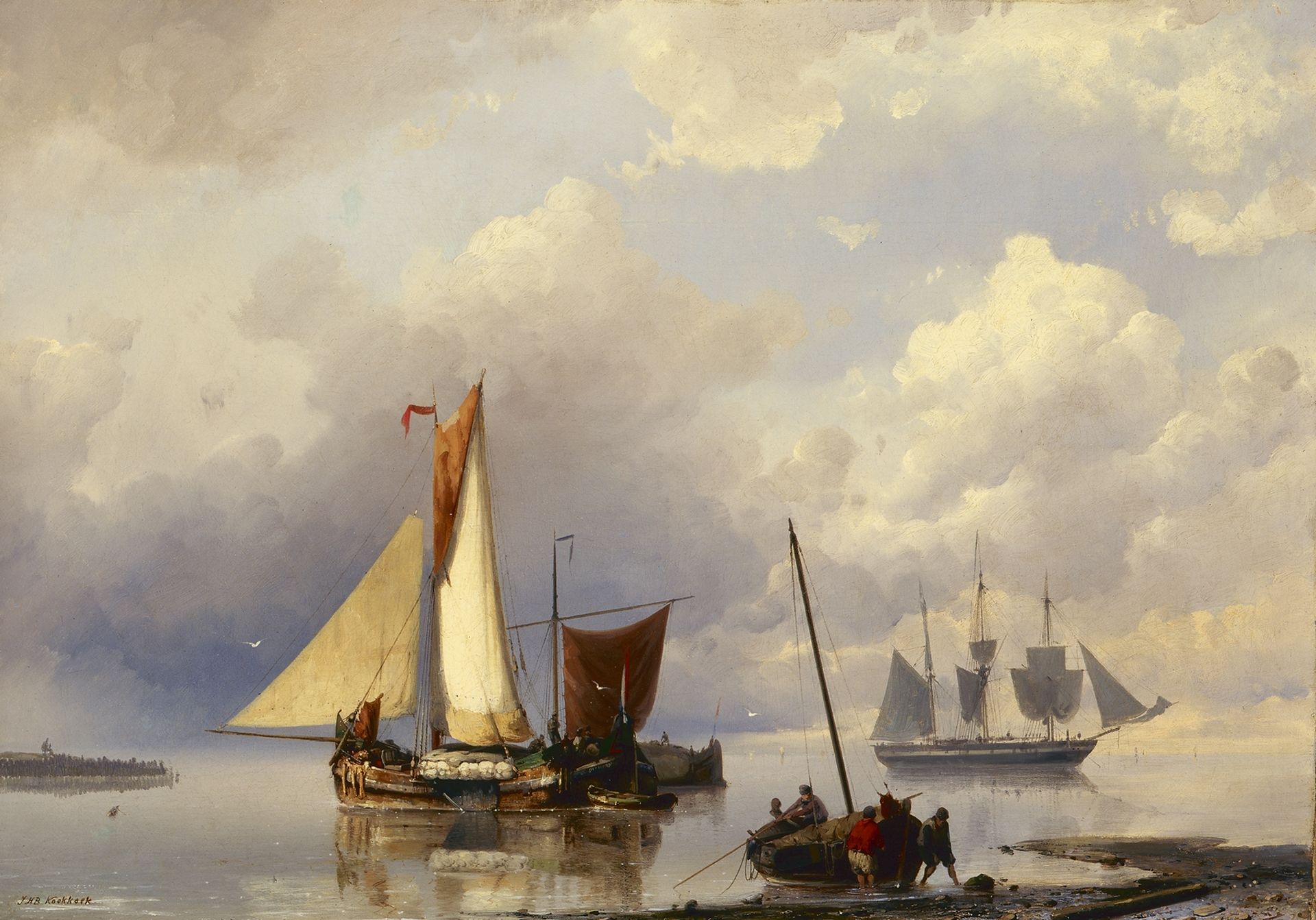 Jan H.B. Koekkoek kunstwerk • schilderij • voorheen te koop Schepen voor de kust bij kalm weer