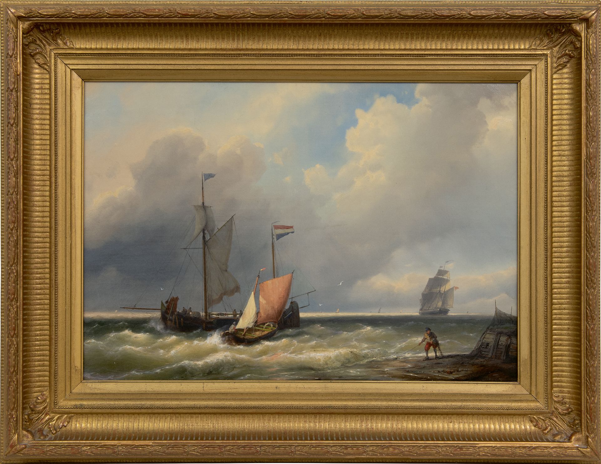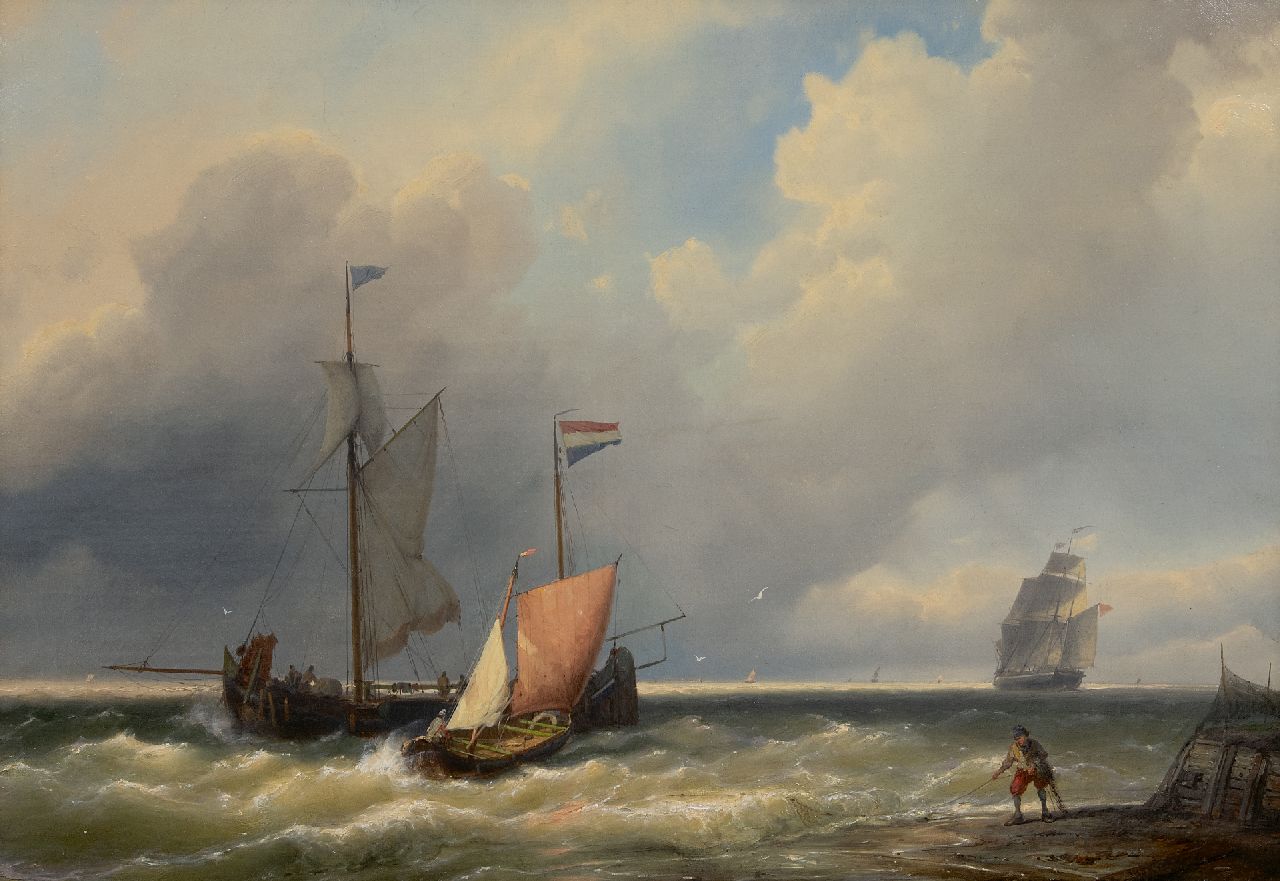 Jan H.B. Koekkoek kunstwerk • schilderij • te koop Schepen voor de kust in een stevige bries
