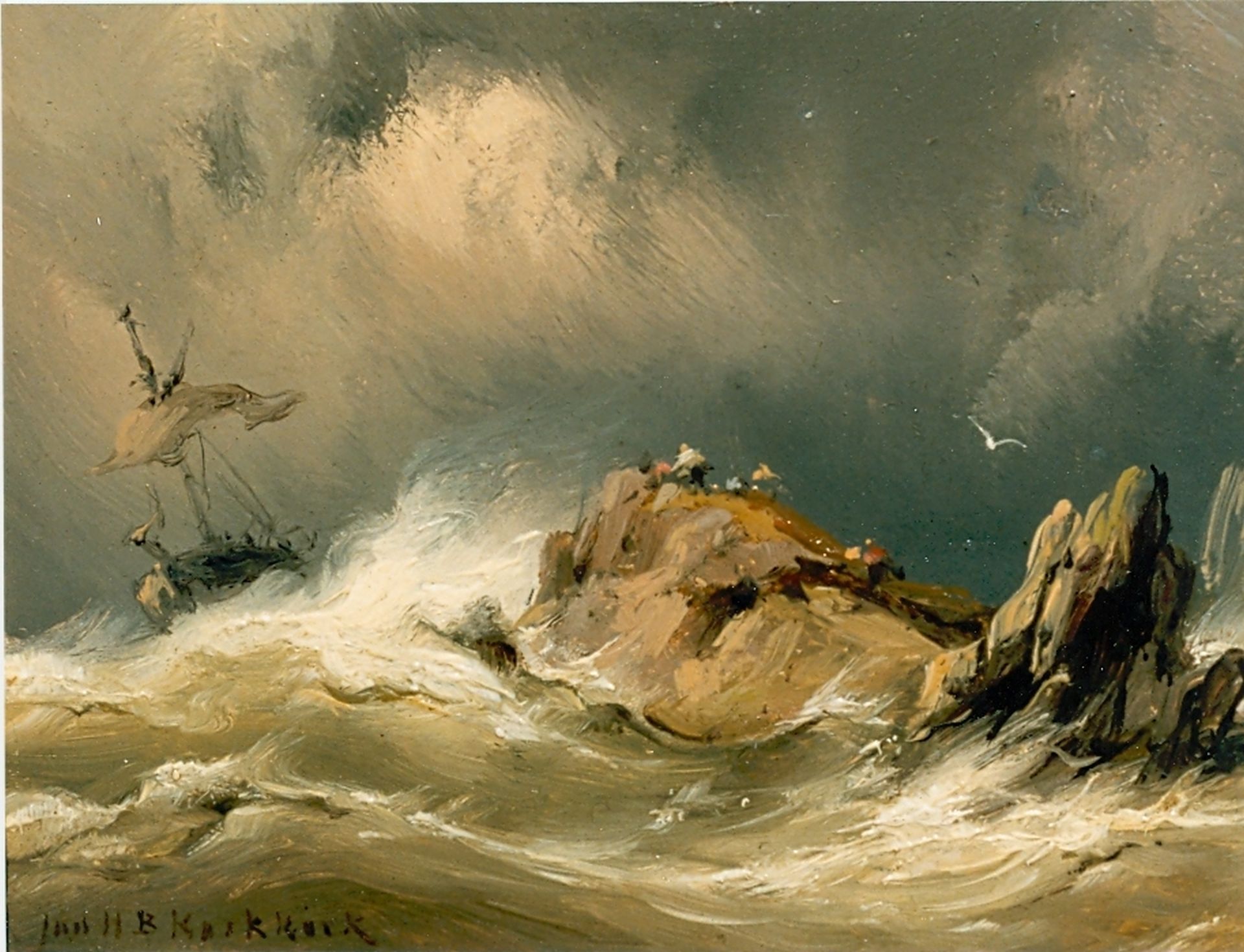 Jan H.B. Koekkoek kunstwerk • schilderij • voorheen te koop Schip op woeste zee