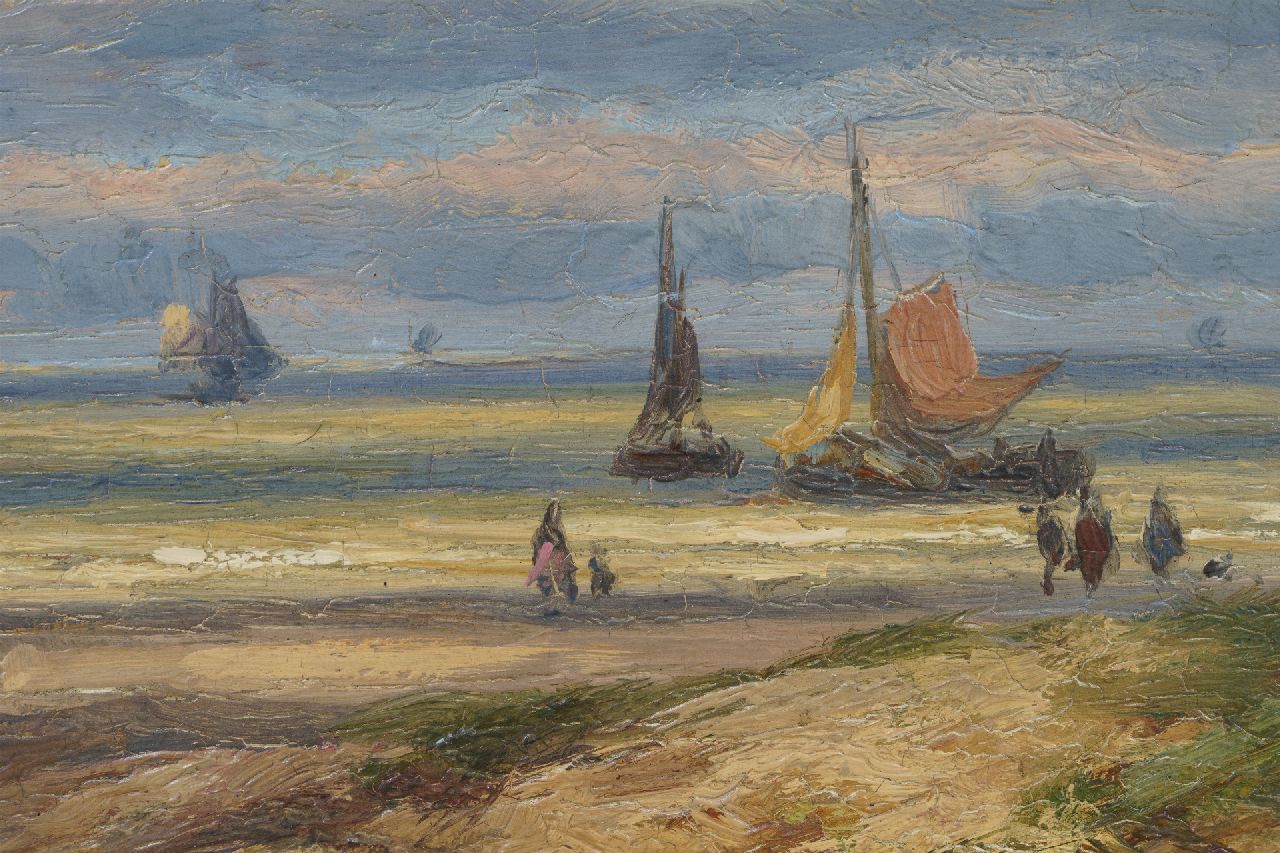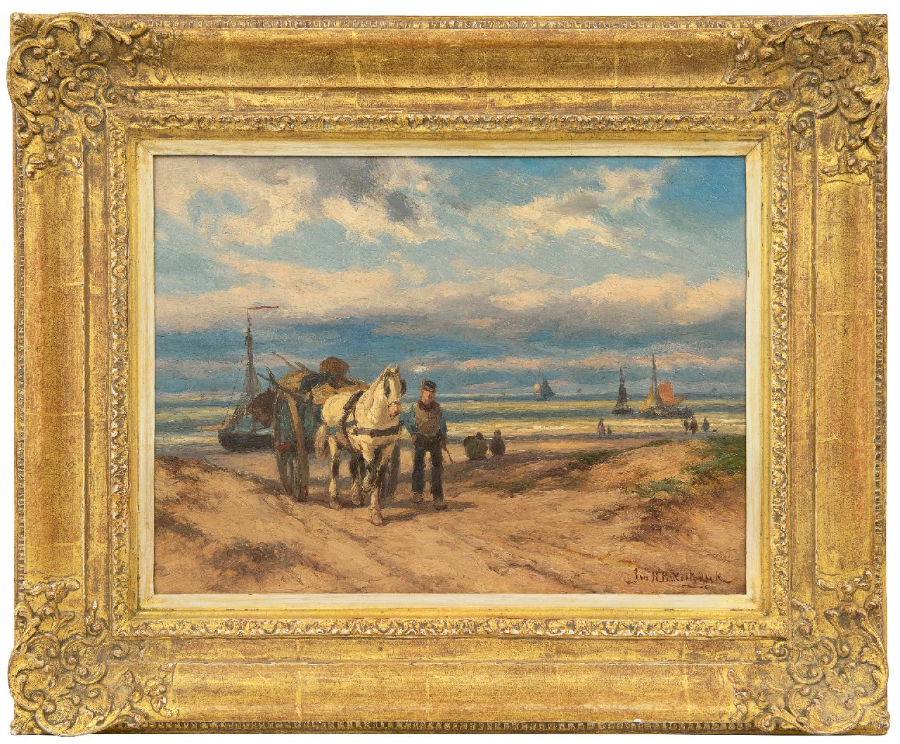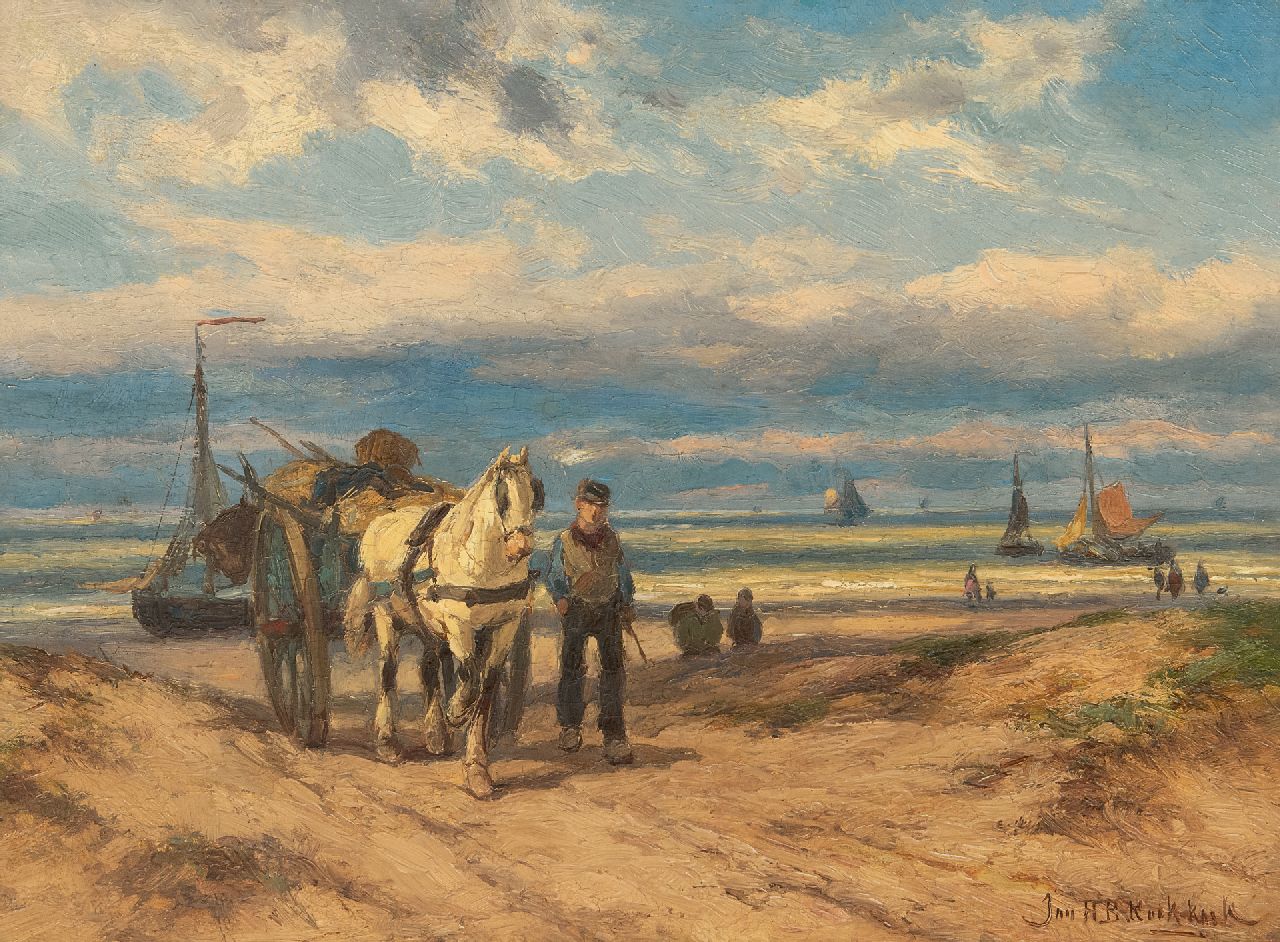 Jan H.B. Koekkoek, de derde zoon van de marineschilder Hermanus Koekkoek sr., was van zijn vier zonen de meest veelzijdige. Ook hij kreeg les van zijn vader, van wie de invloed nog duidelijk zichtbaar is in de zorgvuldige schildertrant en fijne detaillering van zijn vroege zee- en riviergezichten. In latere jaren zocht Jan H.B. steeds meer aansluiting met de Haagse School, trok hij richting het Gooi en schilderde hij strand- en zeegezichten en scènes uit het vissersleven in een losse schilderstijl en helder kleurpalet. Hij is daarmee een goed voorbeeld van hoe de schilderkunst eind 19e eeuw veranderde. Alhoewel de ‘romantiek ’nog niet uit zijn schilderijen verdwenen was werd het duidelijk dat er langzaamaan een nieuwe tijd zou aanbreken.