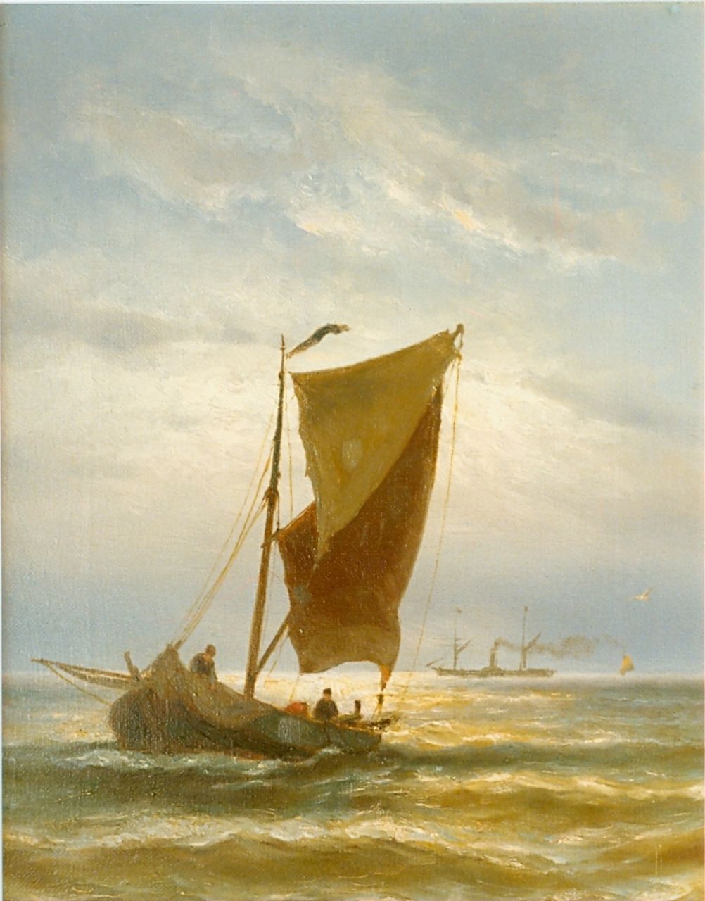 Jan H.B. Koekkoek kunstwerk • schilderij • voorheen te koop Uitvarende vissersboot uit Vlissingen