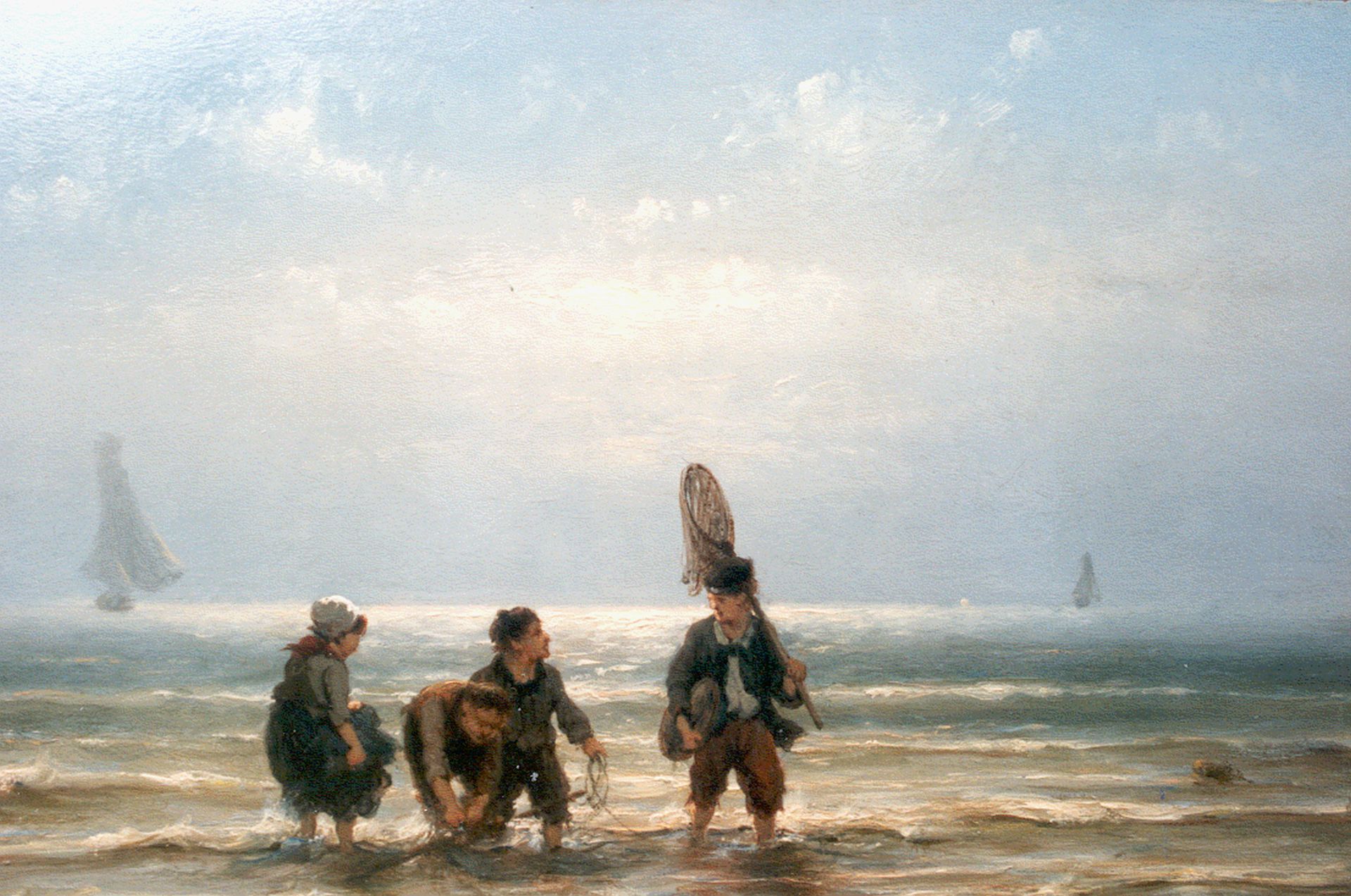 Jan H.B. Koekkoek kunstwerk • schilderij • voorheen te koop Visserskinderen in de branding