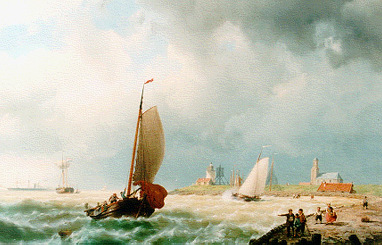 Jan H.B. Koekkoek kunstwerk • schilderij • voorheen te koop Vissersschepen voor de kust
