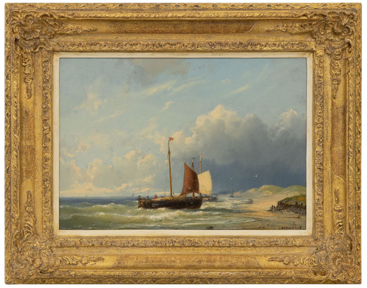 Jan H.B. Koekkoek kunstwerk • schilderij • te koop Vissersschuiten bij het strand