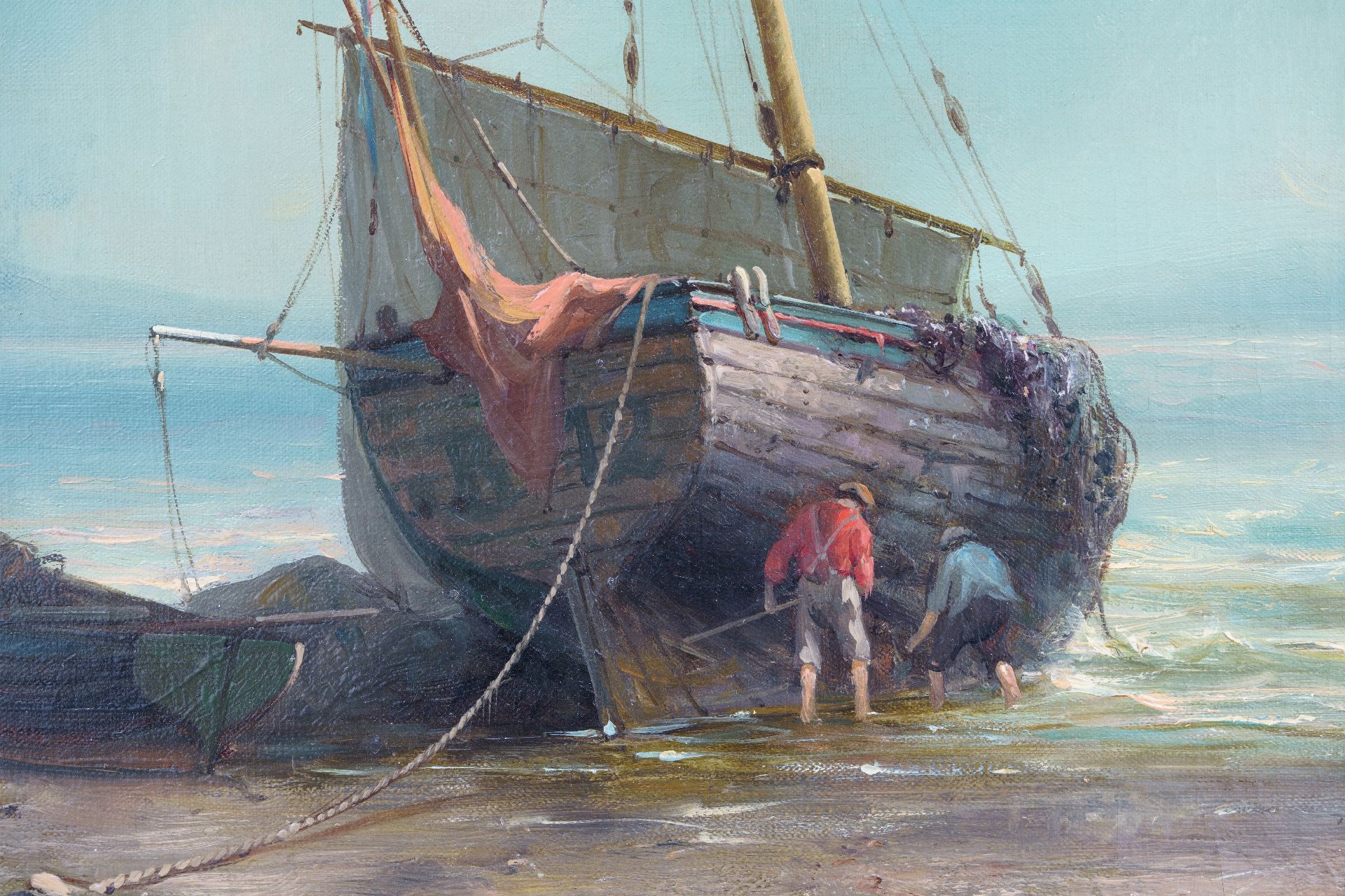 Jan H.B. Koekkoek kunstwerk • schilderij • te koop Visserswerk op het strand