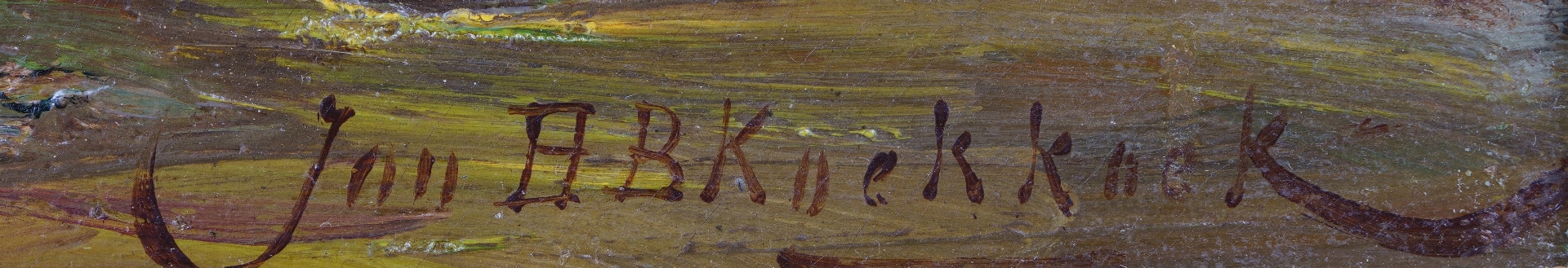 Jan H.B. Koekkoek, de derde zoon van de marineschilder Hermanus Koekkoek sr., was van zijn vier zonen de meest veelzijdige. Ook hij kreeg les van zijn vader, van wie de invloed nog duidelijk zichtbaar is in de zorgvuldige schildertrant en fijne detaillering van zijn vroege zee- en riviergezichten. In latere jaren zocht Jan H.B. steeds meer aansluiting met de Haagse School, trok hij richting het Gooi en schilderde hij strand- en zeegezichten en scènes uit het vissersleven in een losse schilderstijl en helder kleurpalet. Hij is daarmee een goed voorbeeld van hoe de schilderkunst eind 19e eeuw veranderde. Alhoewel de ‘romantiek ’nog niet uit zijn schilderijen verdwenen was werd het duidelijk dat er langzaamaan een nieuwe tijd zou aanbreken.