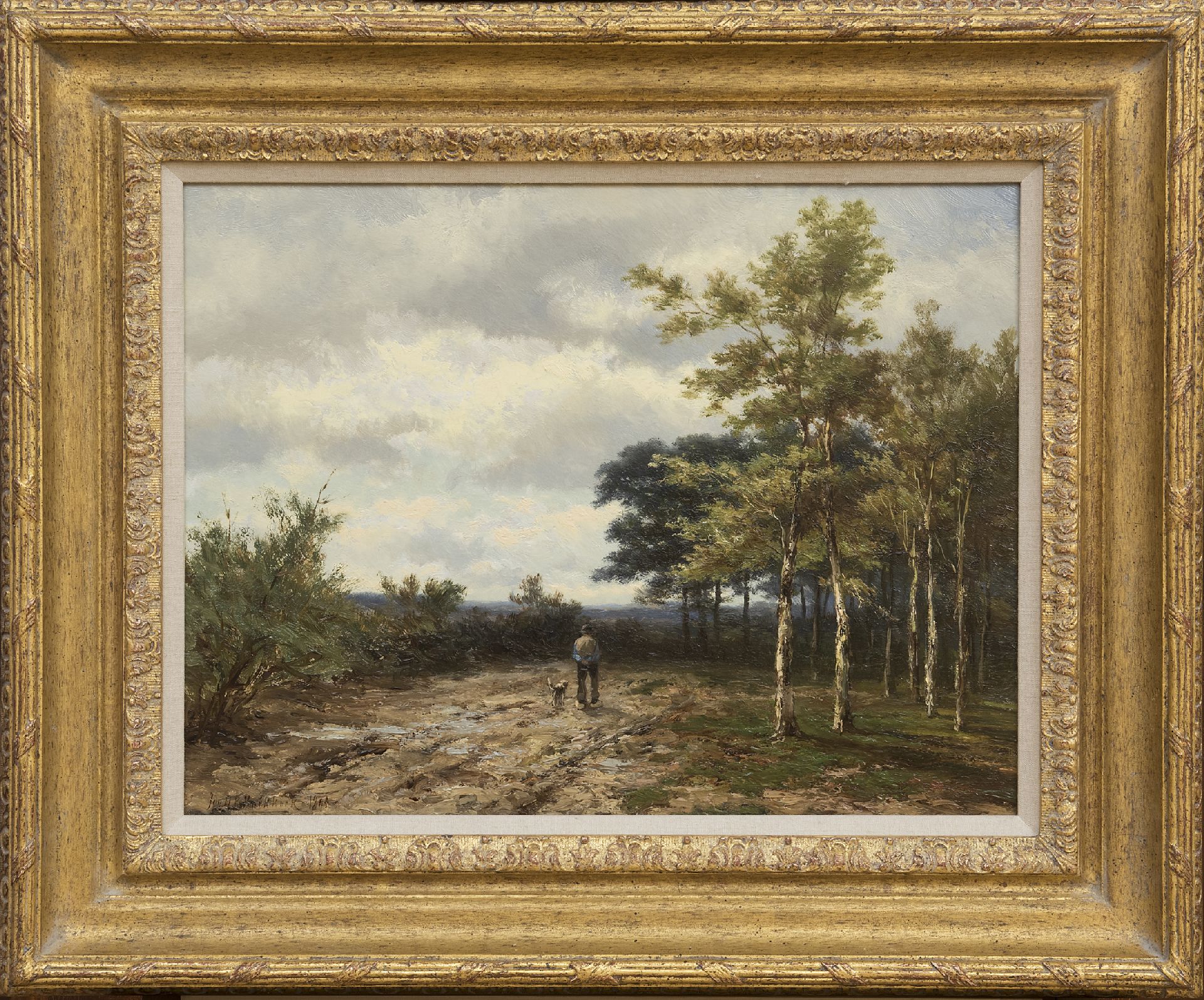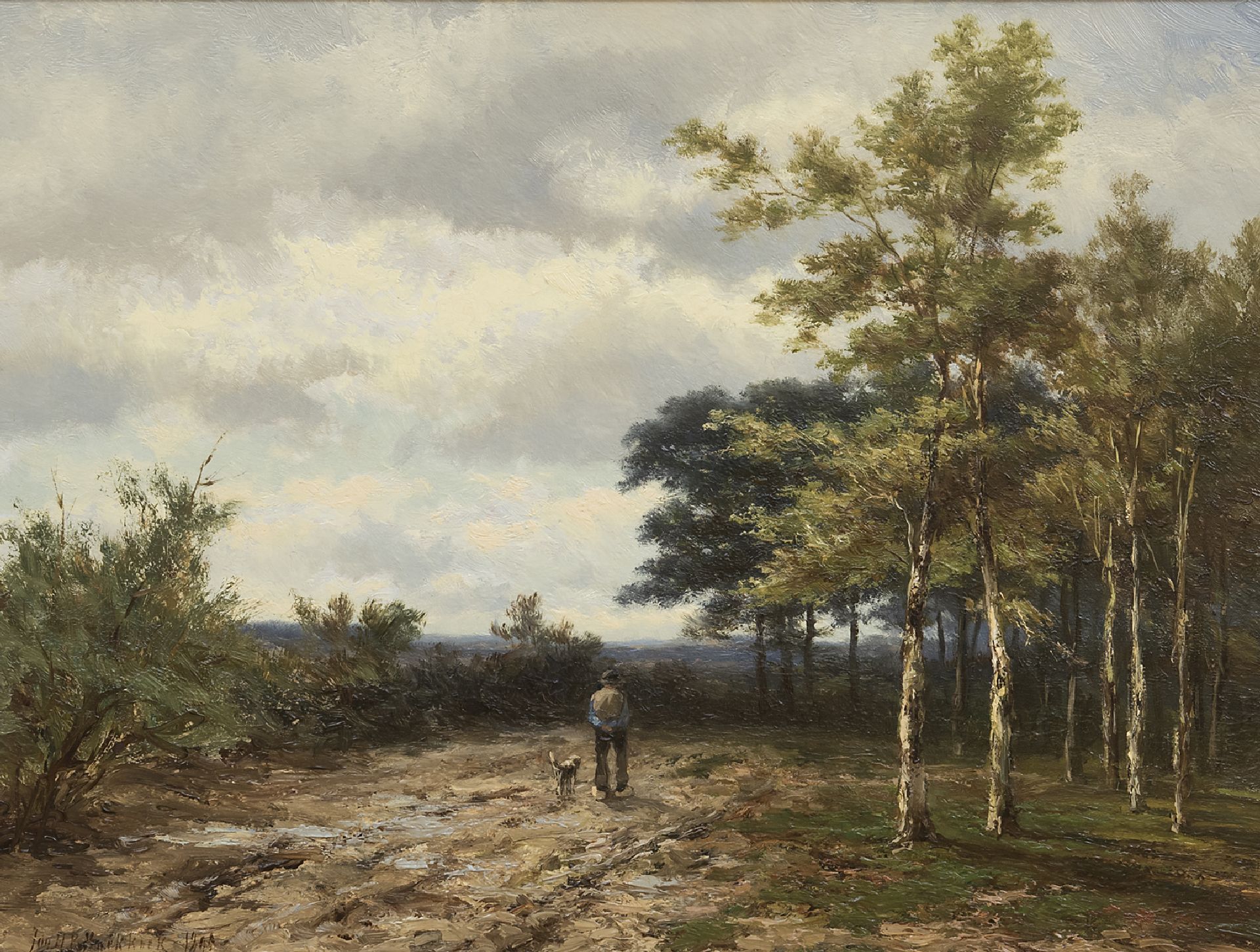 Jan H.B. Koekkoek kunstwerk • schilderij • te koop Wandelende boer met hond