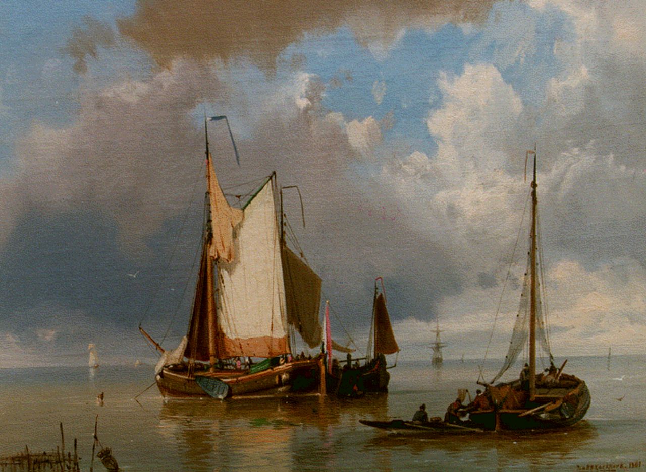 Jan H.B. Koekkoek kunstwerk • schilderij • voorheen te koop Zeilschepen op zee
