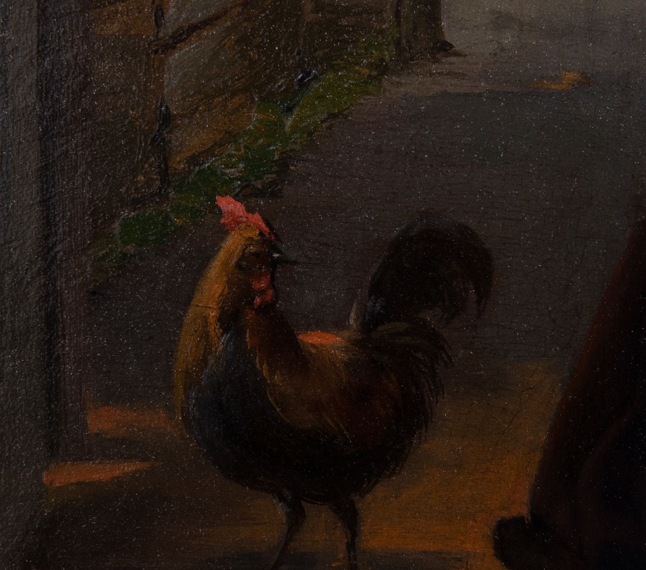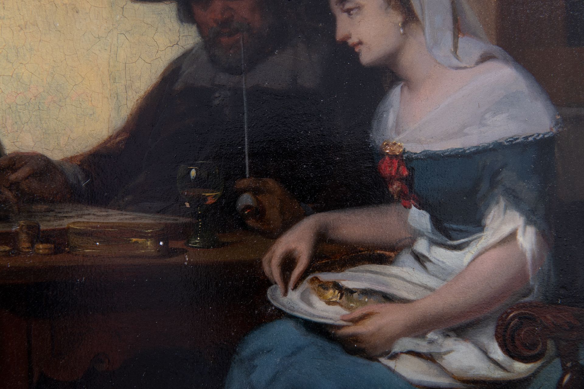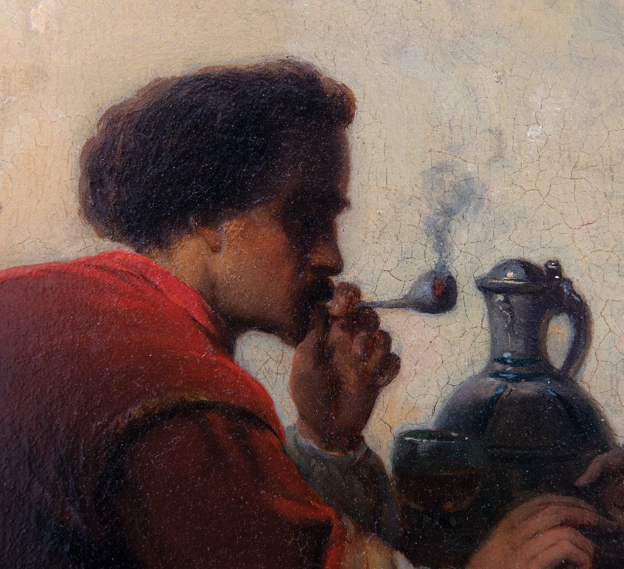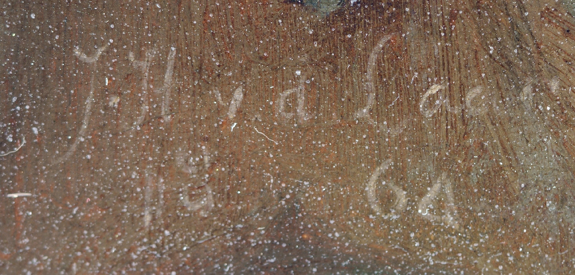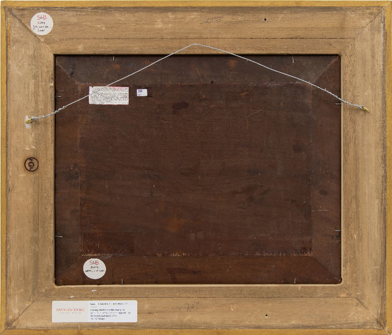 olieverf op paneel 40,8 x 51,1 cm, gesigneerd links van het midden. op bankje en gedateerd 1864