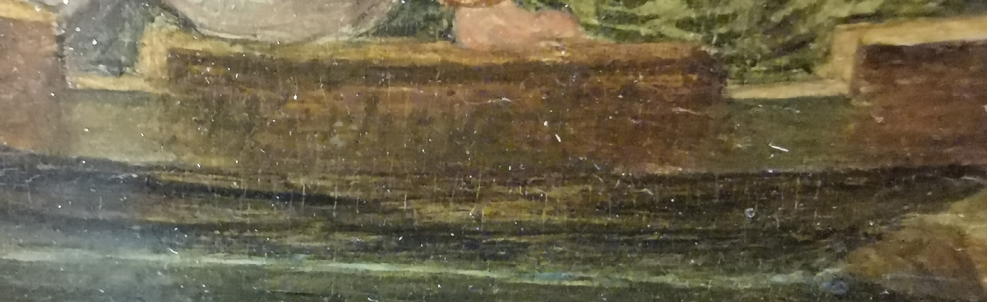 olieverf op paneel 35,3 x 42,0 cm, gesigneerd op de roeiboot