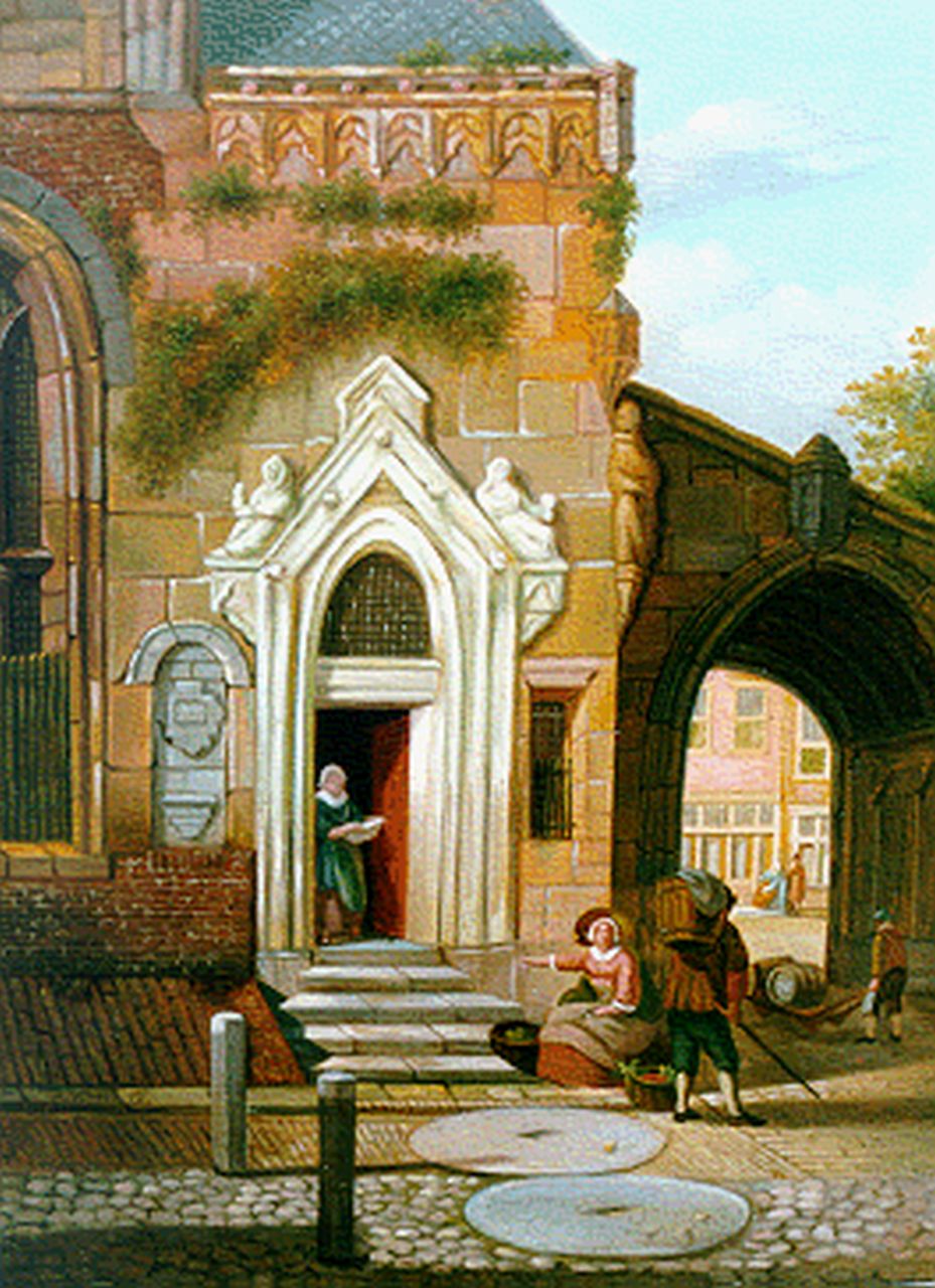 Jan Hendrik Verheijen kunstwerk • schilderij • voorheen te koop Stadsgezicht met figuren
