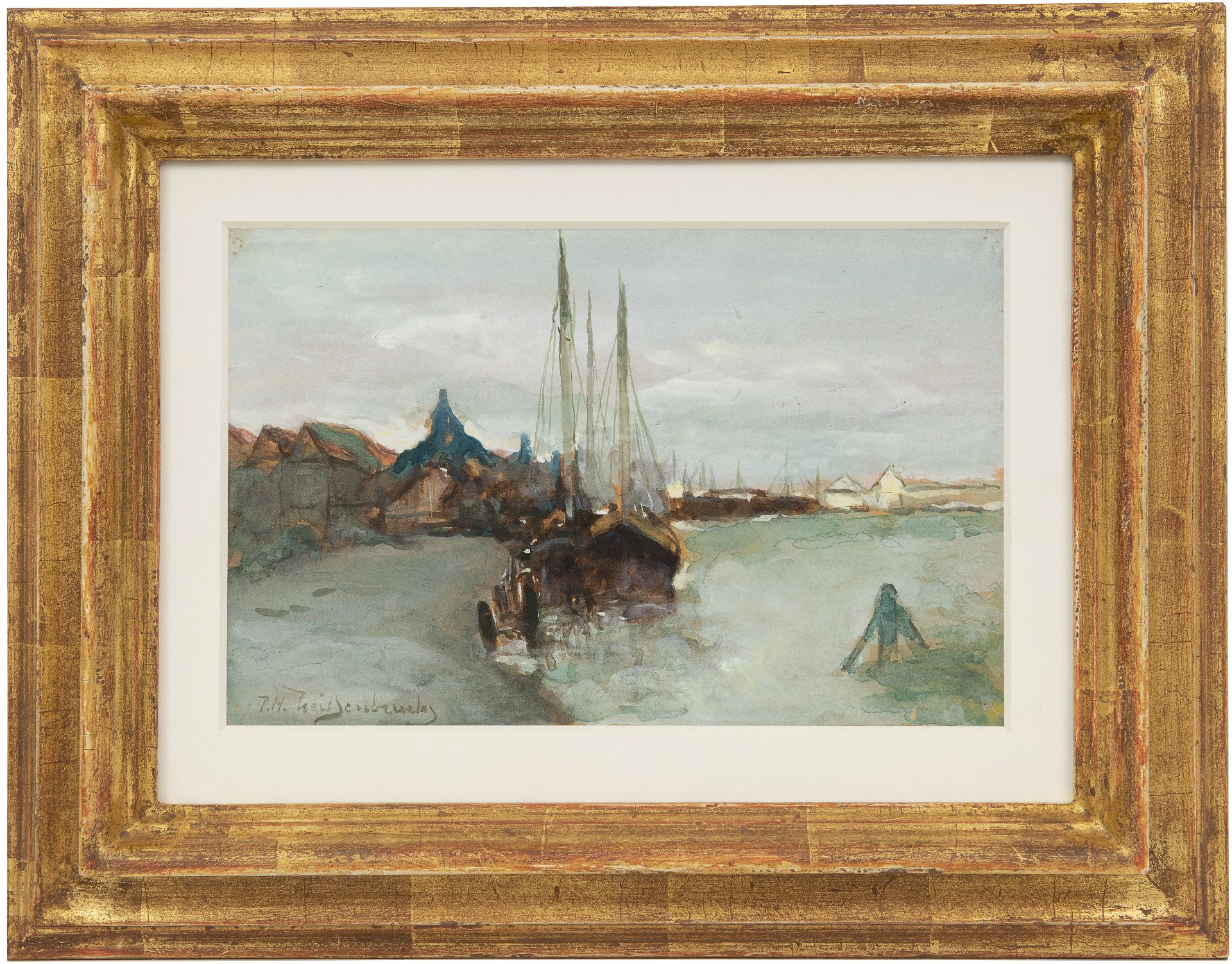 Jan Hendrik Weissenbruch kunstwerk • aquarel • tekening • voorheen te koop De haven van Zaandam