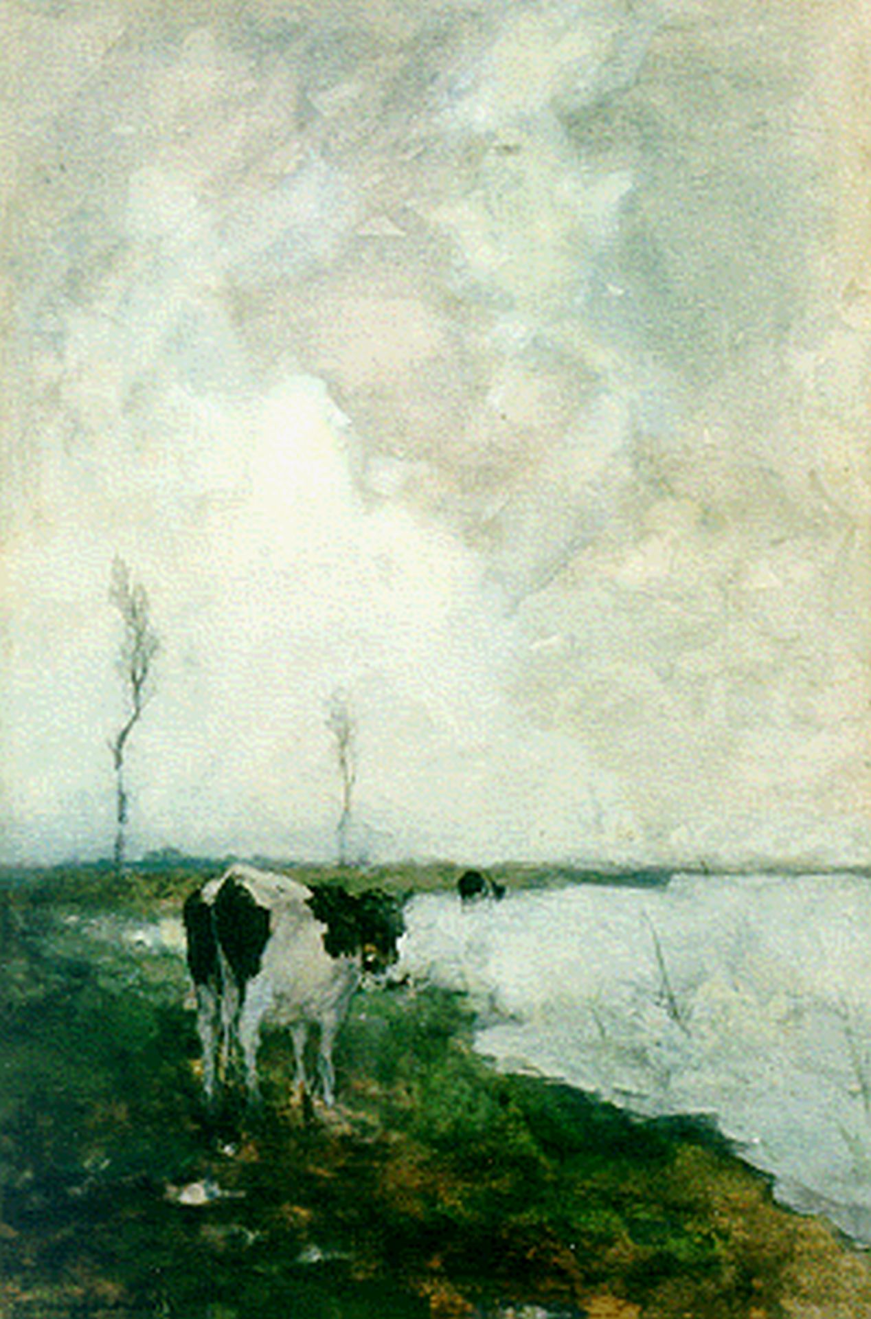 Jan Hendrik Weissenbruch kunstwerk • aquarel • tekening • voorheen te koop Koe bij een poldervaart
