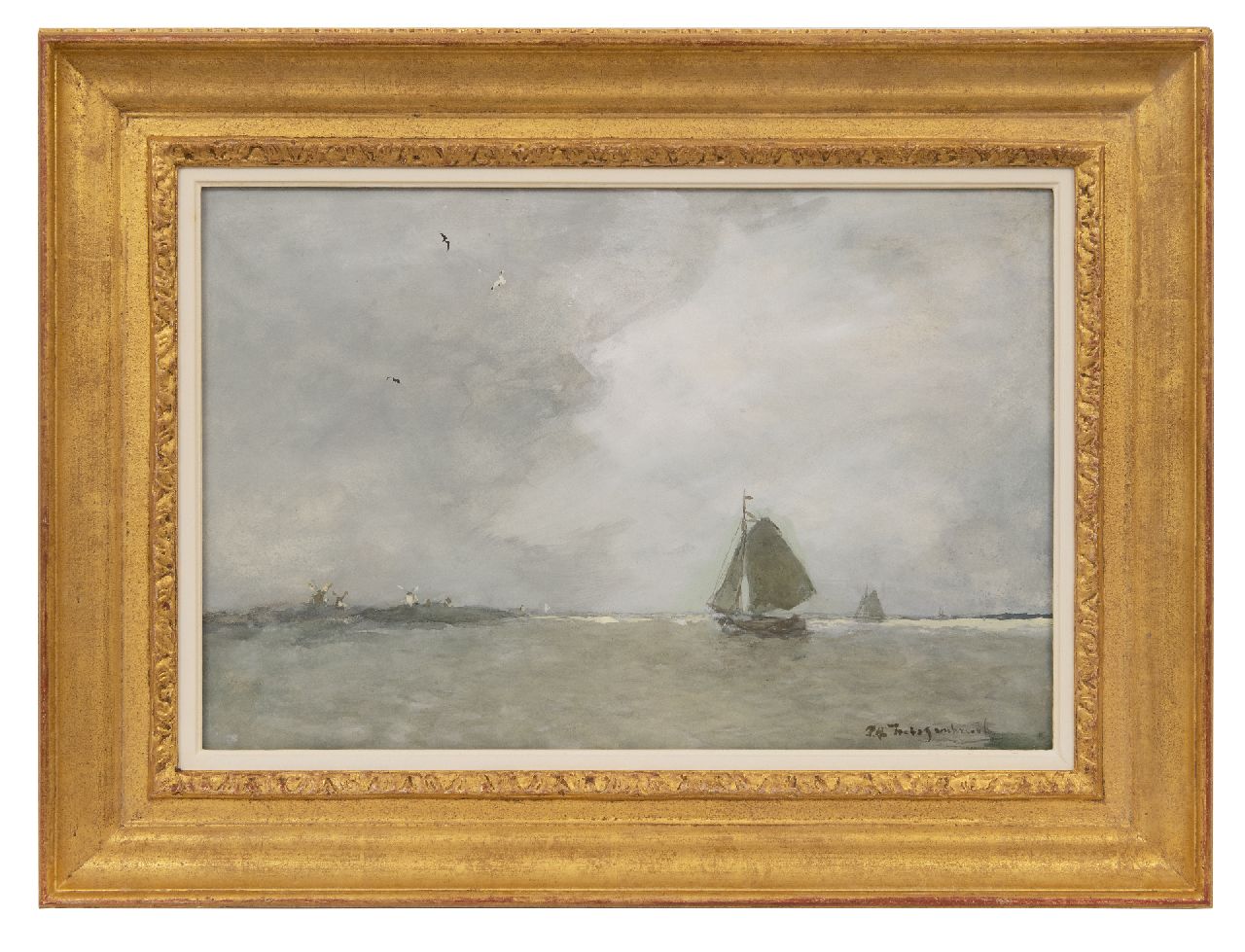 Jan Hendrik Weissenbruch kunstwerk • aquarel • tekening • voorheen te koop Zeilende platbodems op de plas