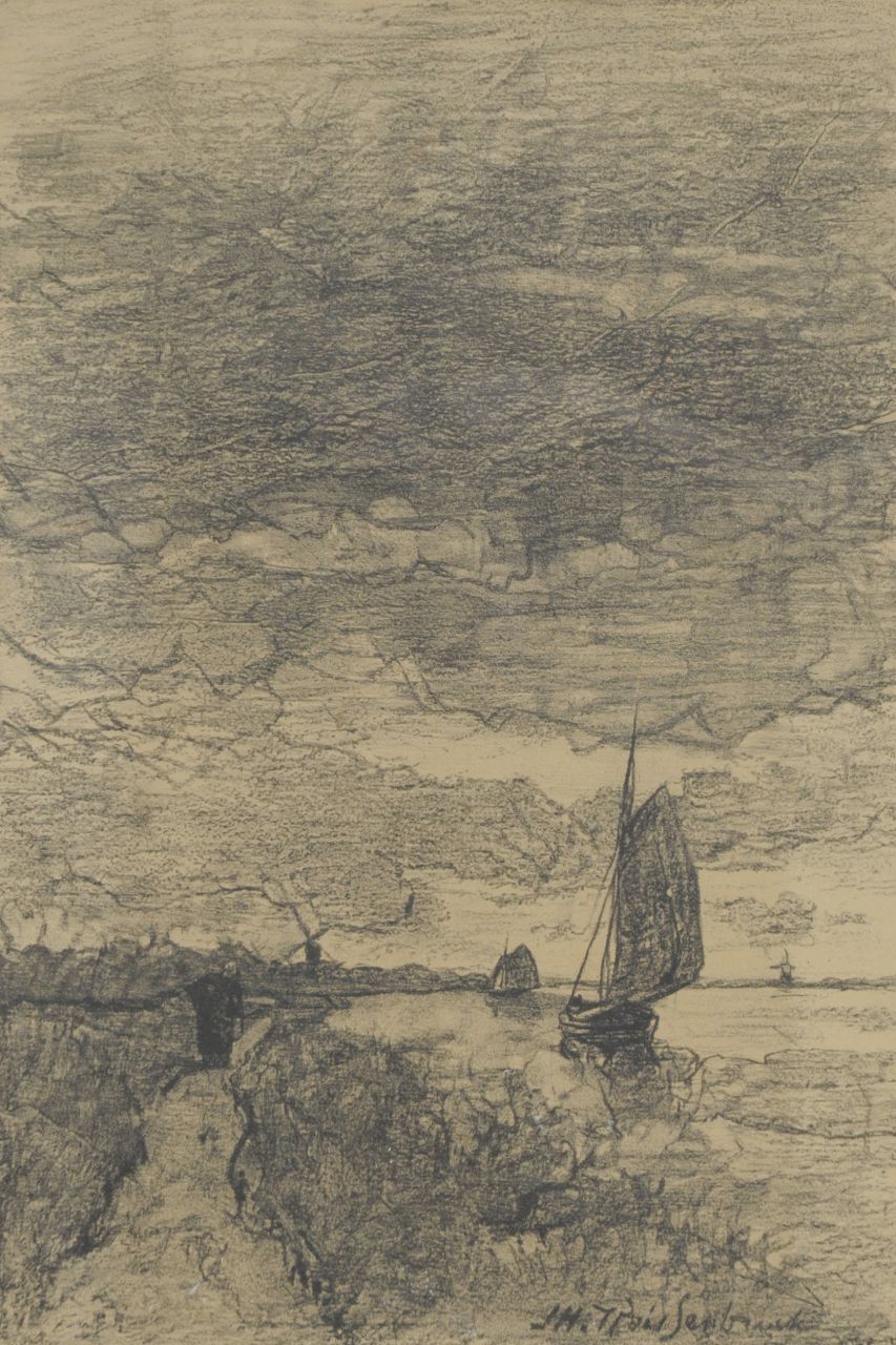 Jan Hendrik Weissenbruch kunstwerk • grafiek • voorheen te koop Zeilschepen op de Spaarne bij Sparendam