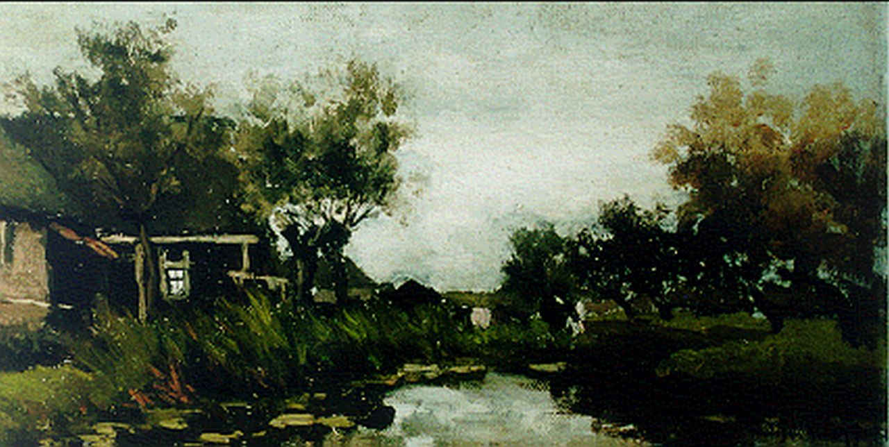 Jan Hendrik Weissenbruch kunstwerk • schilderij • voorheen te koop Boerderij met koeien aan de waterkant