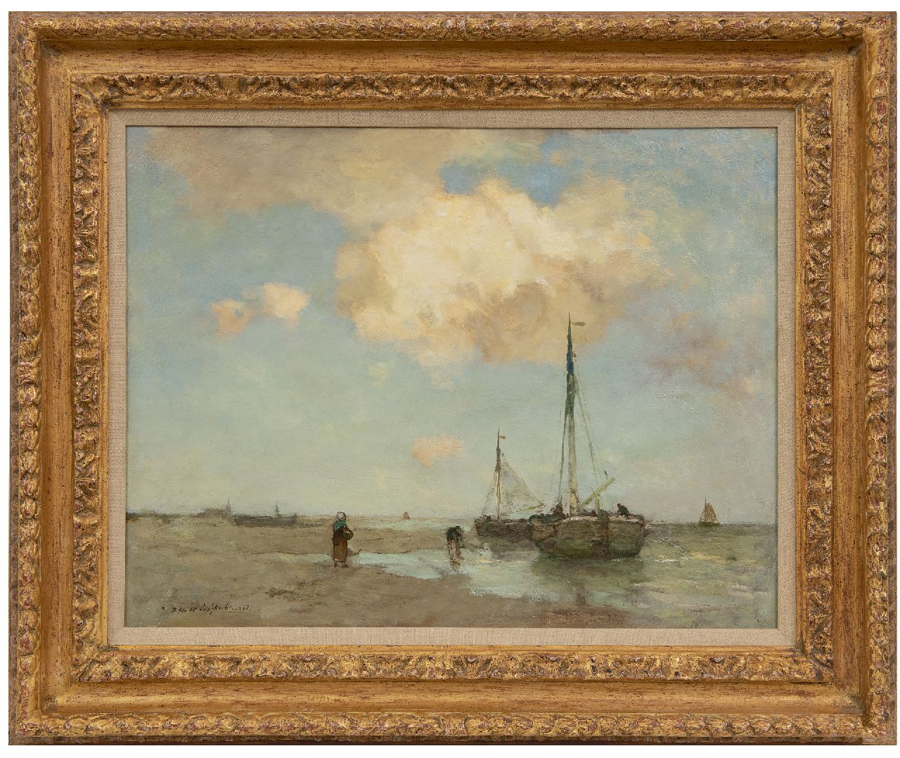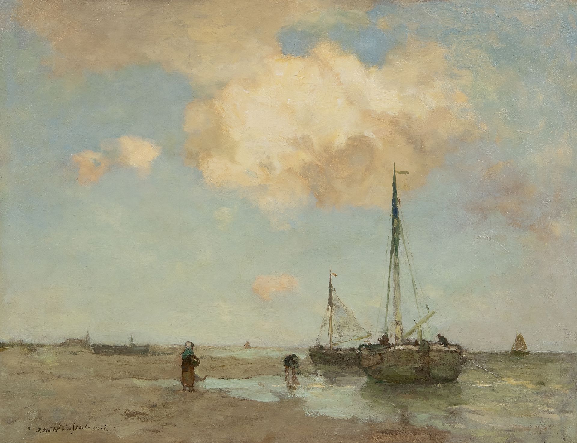 Jan Hendrik Weissenbruch kunstwerk • schilderij • te koop Bomschuiten aan de vloedlijn