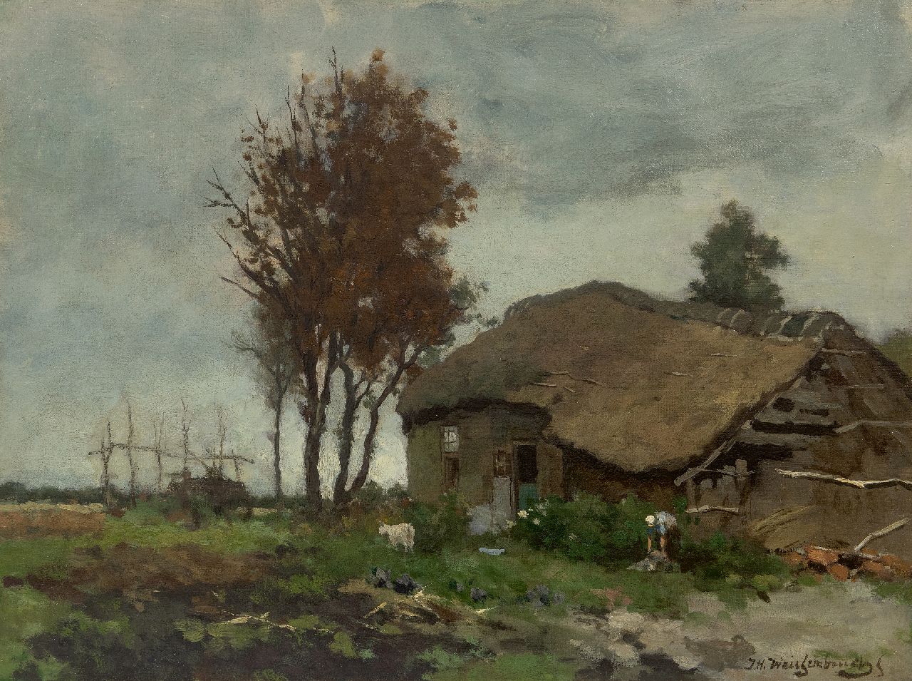 Jan Hendrik Weissenbruch kunstwerk • schilderij • voorheen te koop De oude boerderij
