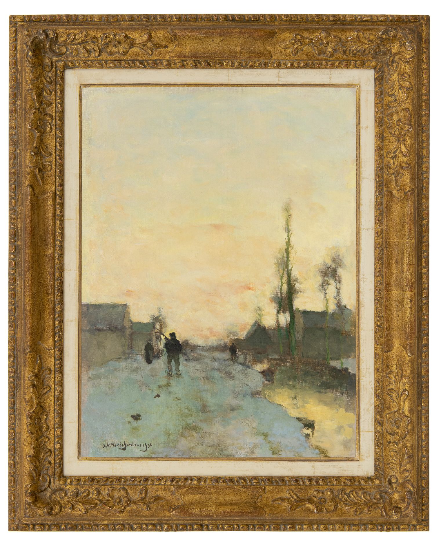 Jan Hendrik Weissenbruch kunstwerk • schilderij • voorheen te koop Figuren op een besneeuwd pad bij Noorden