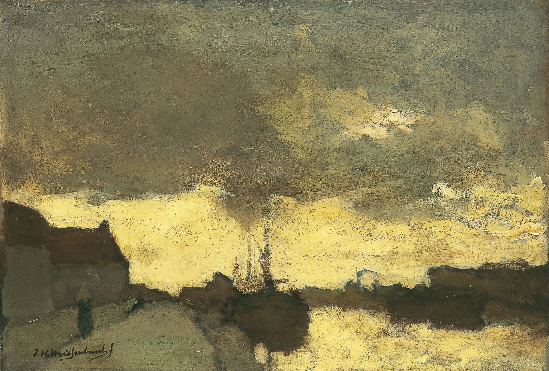 H.J. Weissenbruch wordt beschouwd als een van de meest begaafde schilders van de Haagse School. Hij schilderde vooral landschappen in de omgeving van Den Haag en in het polderland rond Boskoop en Gouda. Zijn grote kracht was het weergeven van het typische Hollandse licht, soms helder, soms diffuus en dampig. Ook luchten boeiden hem. 'Licht en lucht zijn de grote tovenaars', zei hij, 'Zowel grijze regenluchten als heldere wolkenluchten op een zomerse dag'. 'Schilders kunnen nooit genoeg naar de lucht kijken.' Weissenbruch gaf les aan V. Bauffe en T.E.A. de Bock.
