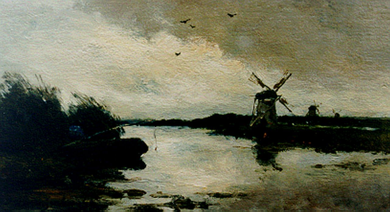 Jan Hendrik Weissenbruch kunstwerk • schilderij • voorheen te koop Hengelaar in polderlandschap
