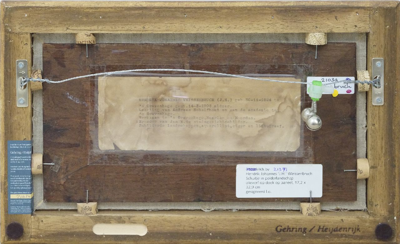 Literatuur: tent. cat. Amsterdam, Frans Buffa & Zonen, 'Tentoonstelling van schilderijen en aquarellen door J.H. Weissenbruch', 1899, cat.nr. 36 (met afb.); vgl.: Willem Laanstra, 'Johan Hendrik Weissenbruch 1824-1903', Amsterdam 1992, pag. 87, cat.nr. O/19-2.