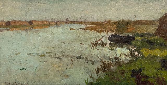 Jan Hendrik Weissenbruch | Plassengezicht met punter, aquarel op papier, 32,5 x 54,0 cm, gesigneerd r.o.