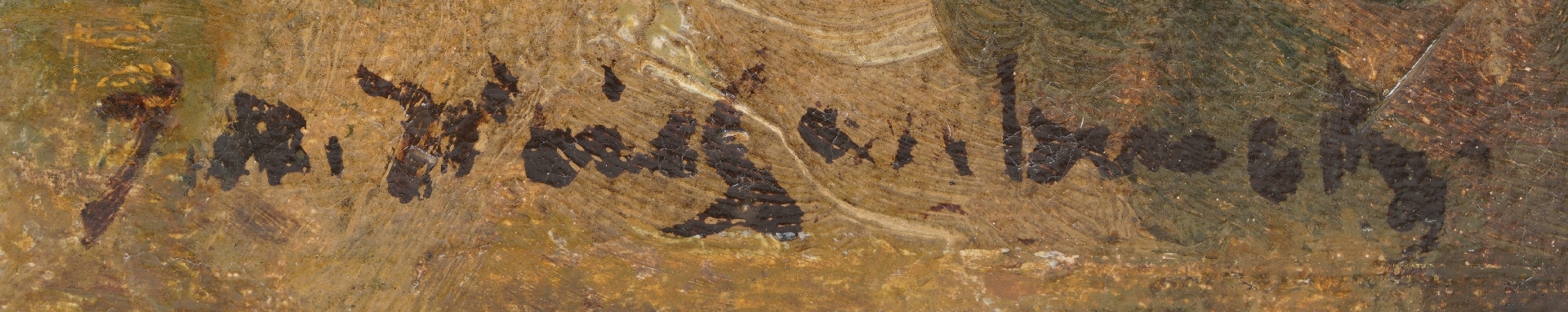 olieverf op doek op paneel 32,1 x 19,1 cm, gesigneerd linksonder en te dateren jaren 90