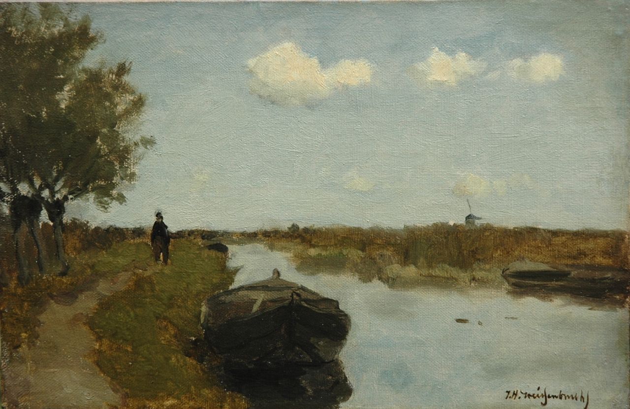 Jan Hendrik Weissenbruch kunstwerk • schilderij • voorheen te koop Langs de poldervaart